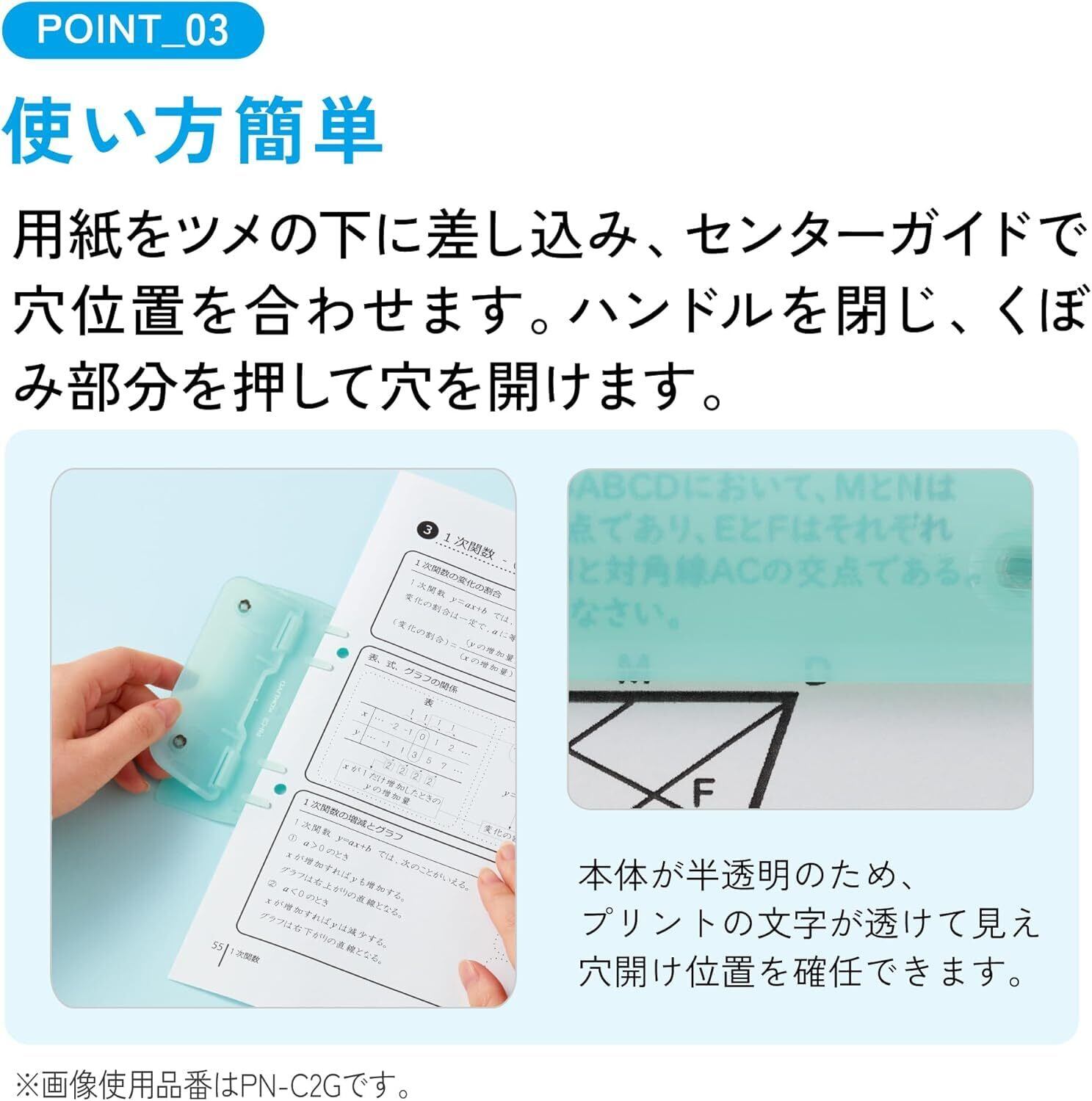 【しっかり穴あけ、64g/m²用紙2枚まで対応】 日常的なプリント整理に十分な穴あけ能力。学習やオフィスでの資料整理にぴったり。