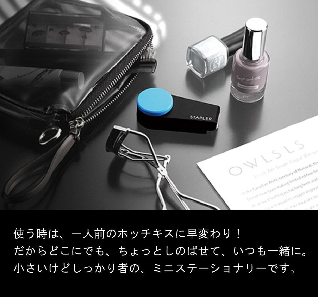 小さくコンパクトにたため、ポーチやペンケースに収納して持ち運べる携帯ホッチキス「カラーギミック」。