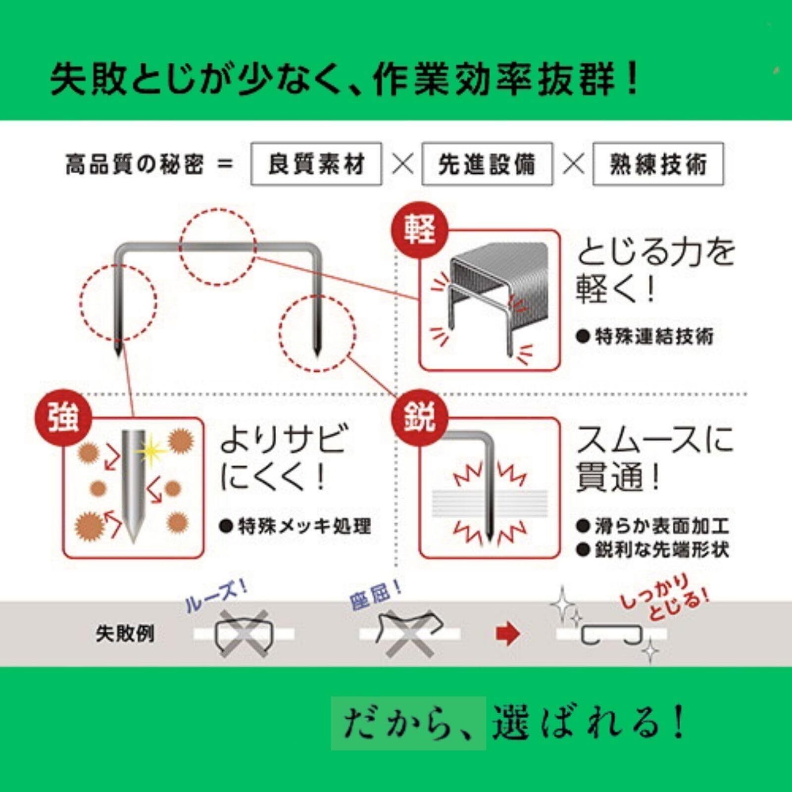 ホッチキス針の10号針。 保持力はこだわりの最高品質。