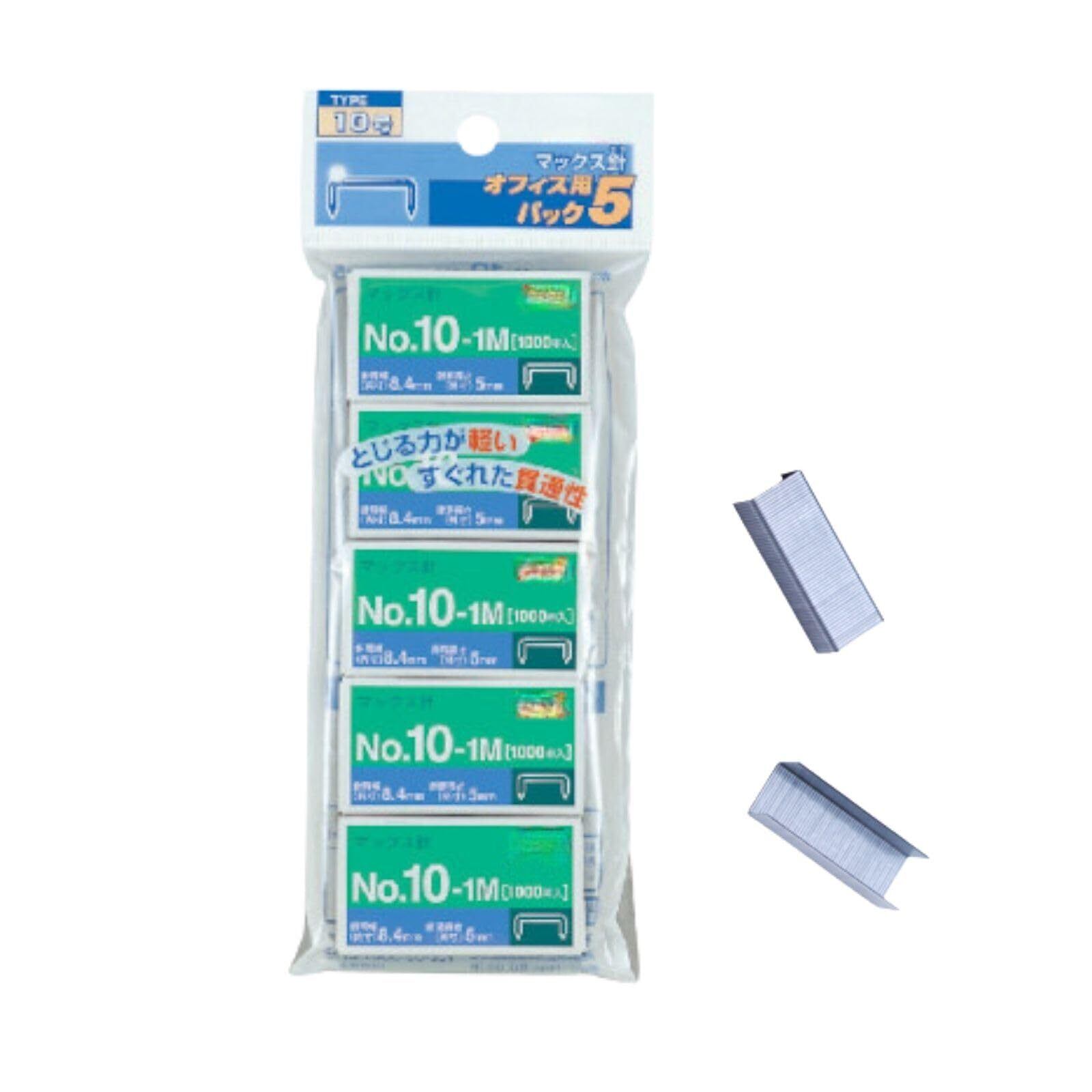 【在庫処分】マ ックス ホチキス No.10-1M ハンディタイプ向け 10号 オフィス用 5パック (1000本/パック) ホッチキス針 ステープル 10 針 替針
