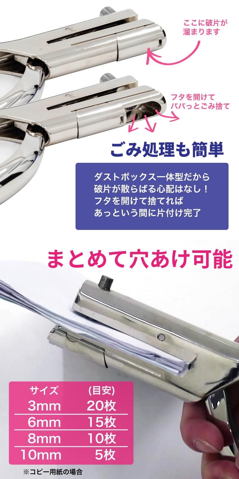 【数量限定】FUNKS 穴あけパンチ 1穴 単穴 穴径6mm 3mm 8mm 10mm 事務器 深穴 深さ53mm パンチ (3mm)