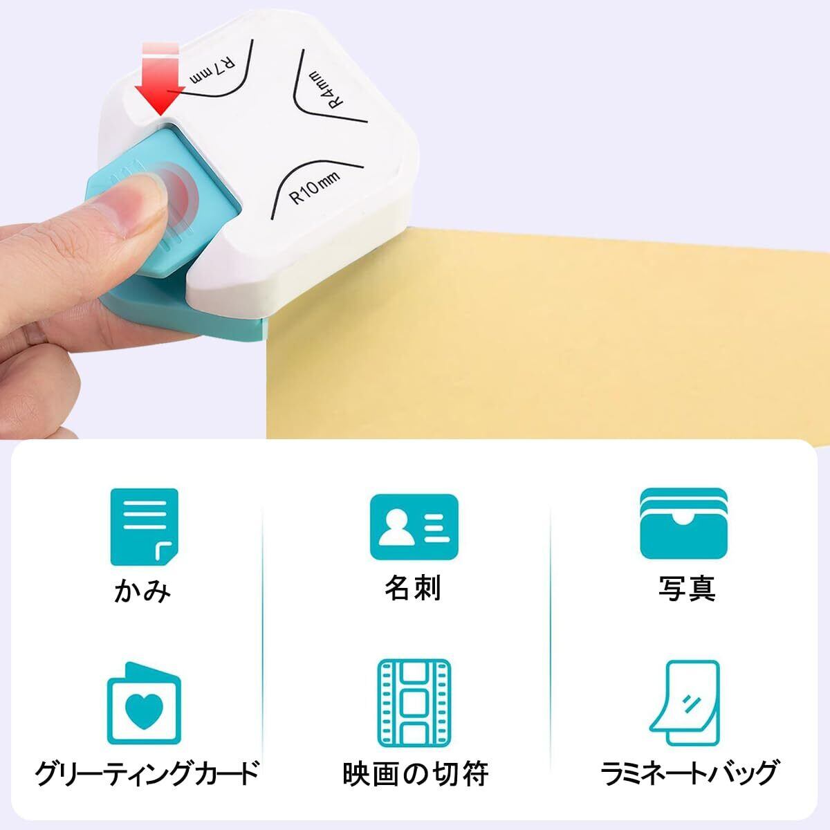 【新着商品】コーナーカッター コーナーパンチ 3-in-1角丸パンチ(R4mm R7mm R10mm)シャープ コーナーカッター ブルー 紙、pvc 紙、事務用品、写真、名刺、カード用