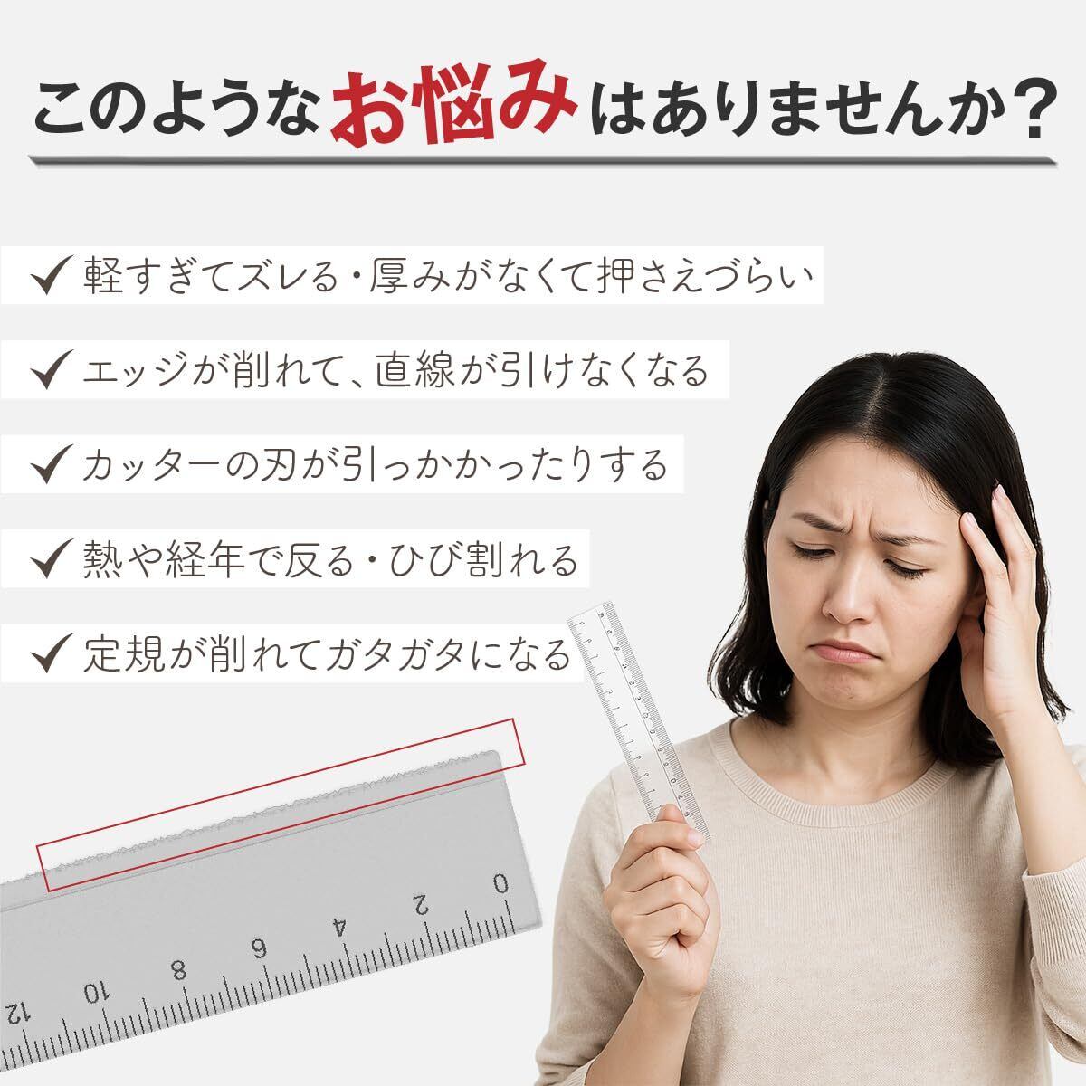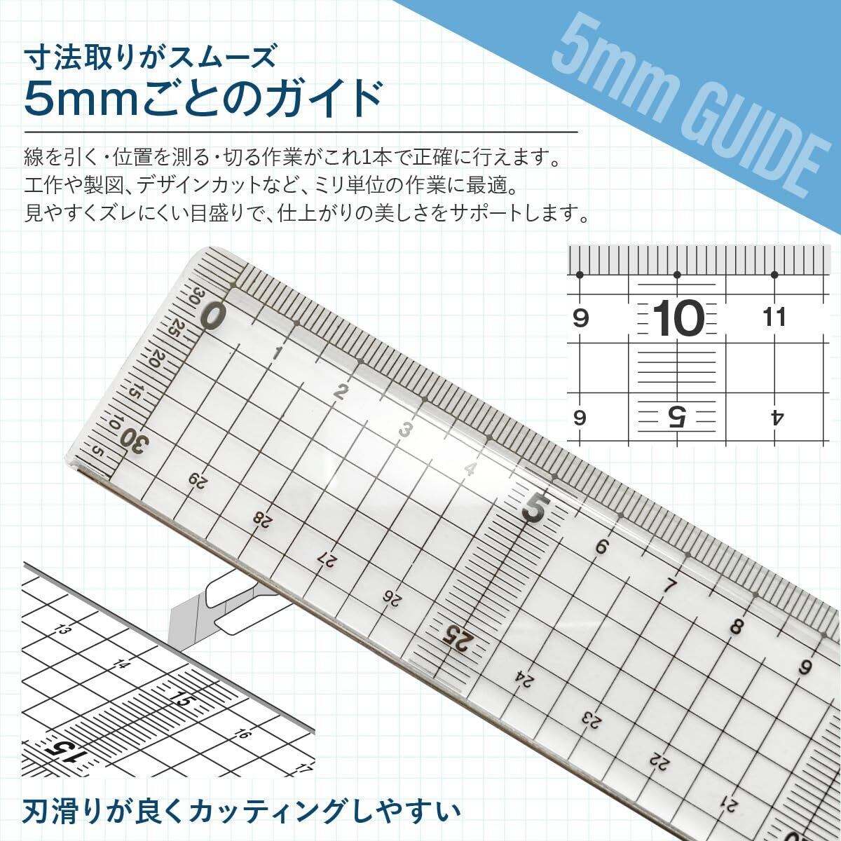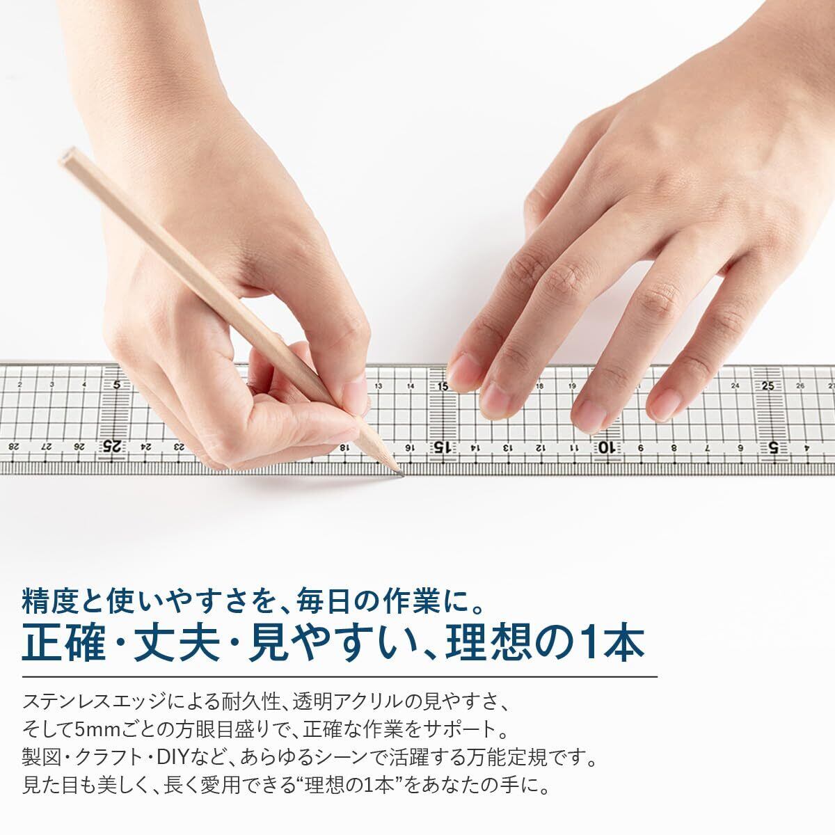 耐久性: ステンレスエッジにより、定規の端を傷つけにくい設計です。