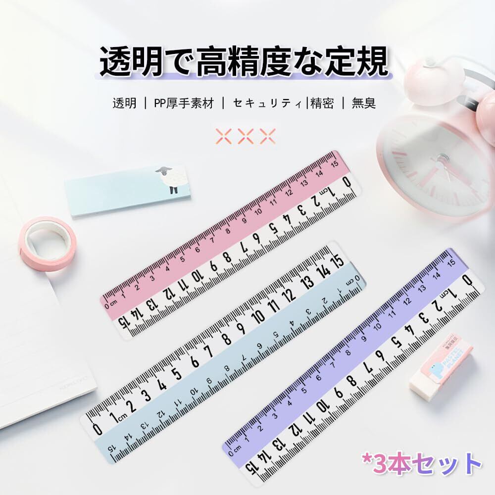 【数量限定】透明 ストレートルーラー 15cm 3個入り プラスチック定規 プラスチック 特大 クリアスケール多機能デザイン定規 高画質 測定ツール 描画テンプレート、定規、幾何尺 、測定ツール、小学生 子供 中学生 教師 絵画 文房具 (ブルー+ピンク+パープル)