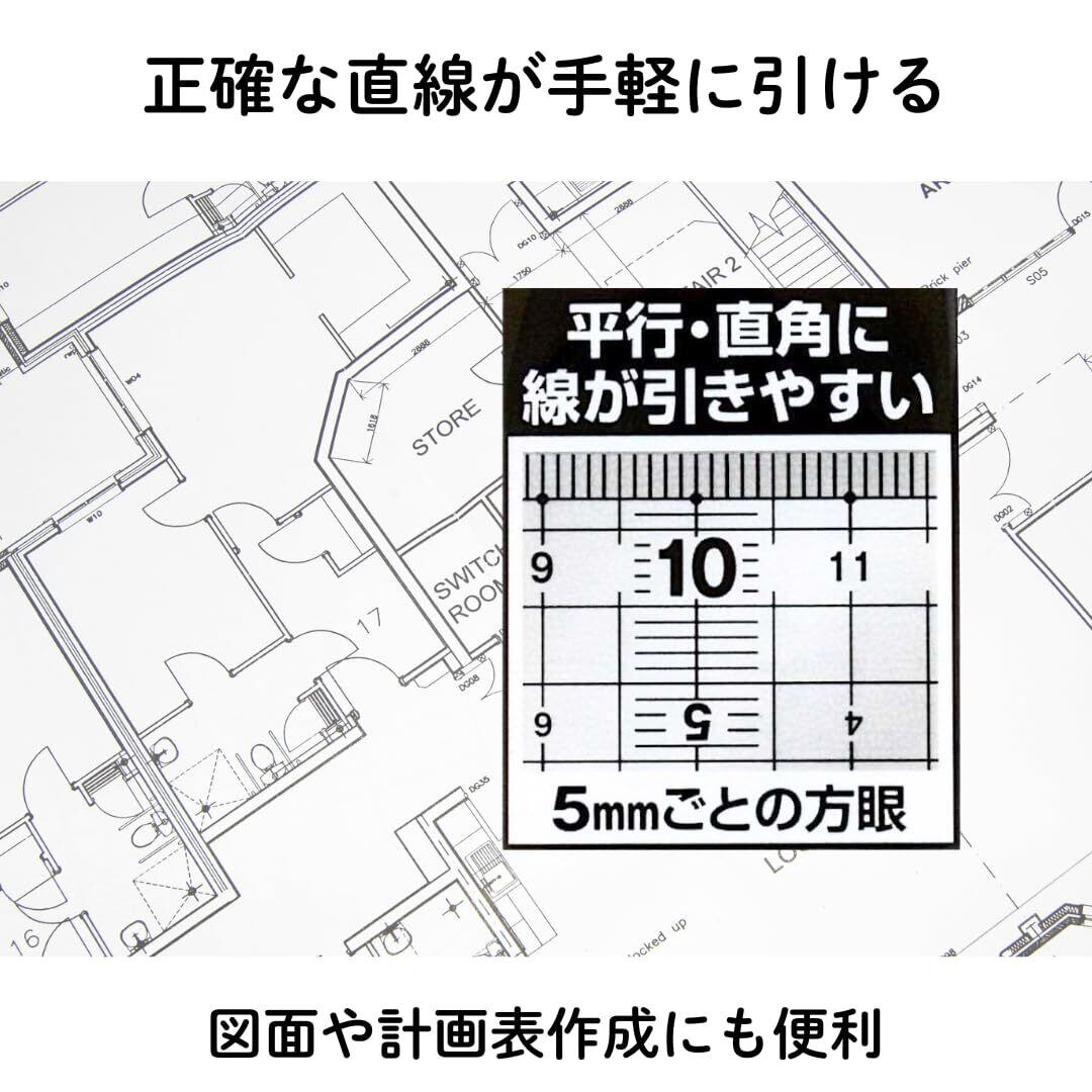 【正確な直線が手軽に引ける】 5mmごとの方眼付きで、目測に頼らず精密にラインが引けるので、図面や計画表の作成にも便利です。