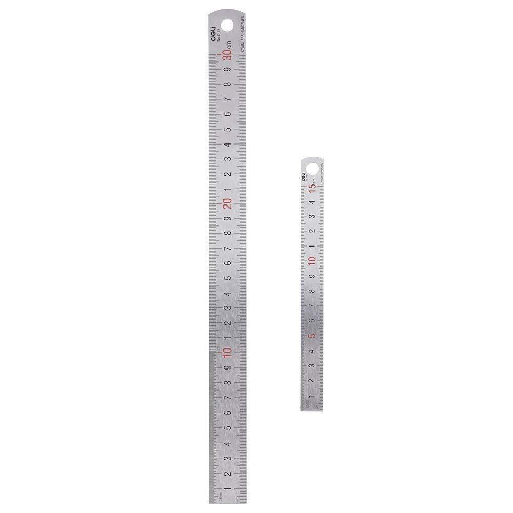 ステンレス直尺 定規 300mm(大)x1、150mm(小)x1、 2本セット「ミリメートルとインチの交換表付き」