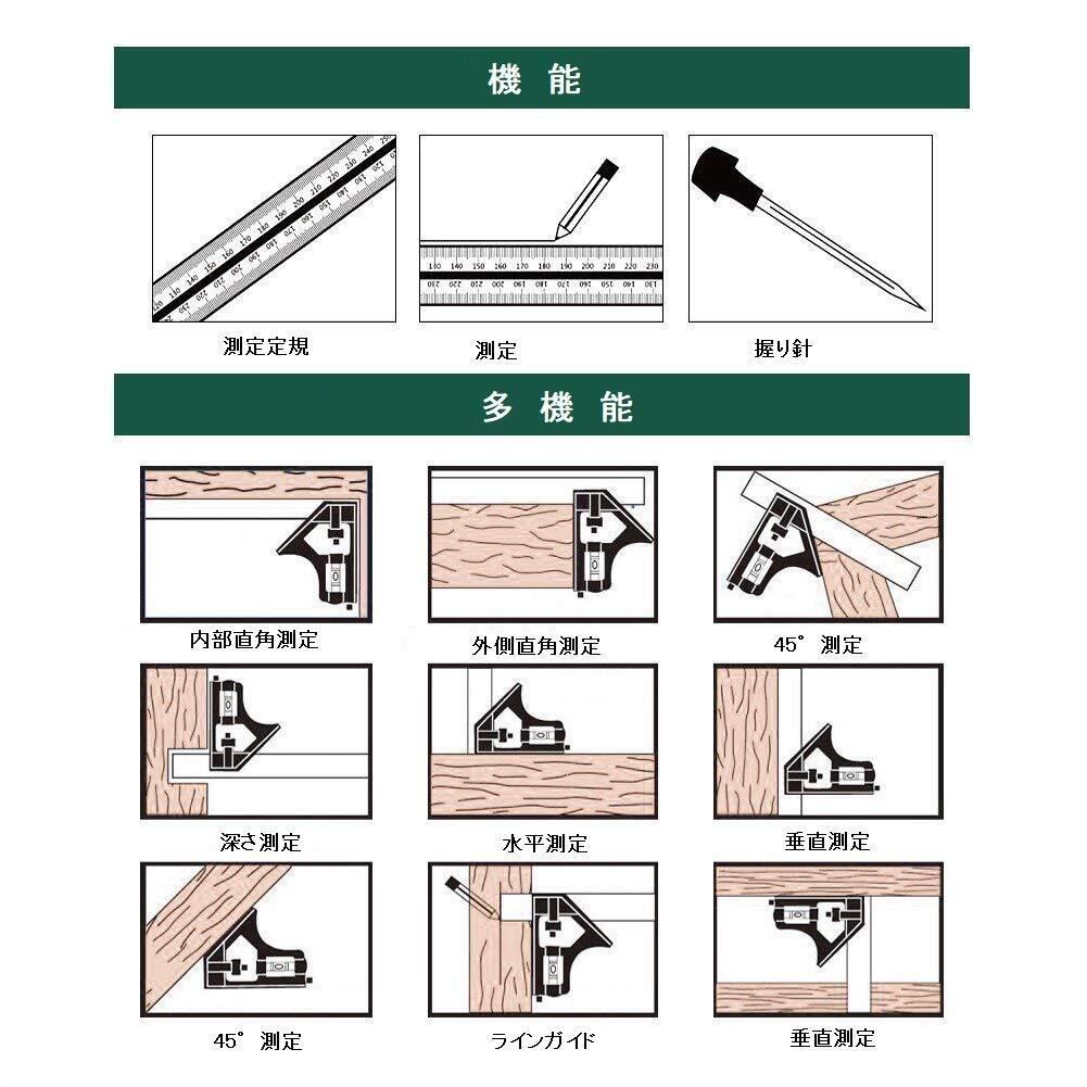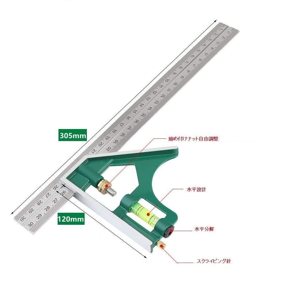 多機能角定規 ステンレス 組み合わせ コンビネーションスクエアルーラー ストレート定規 曲尺 直角ルーラー 30cm 耐熱性 耐腐食 高精度