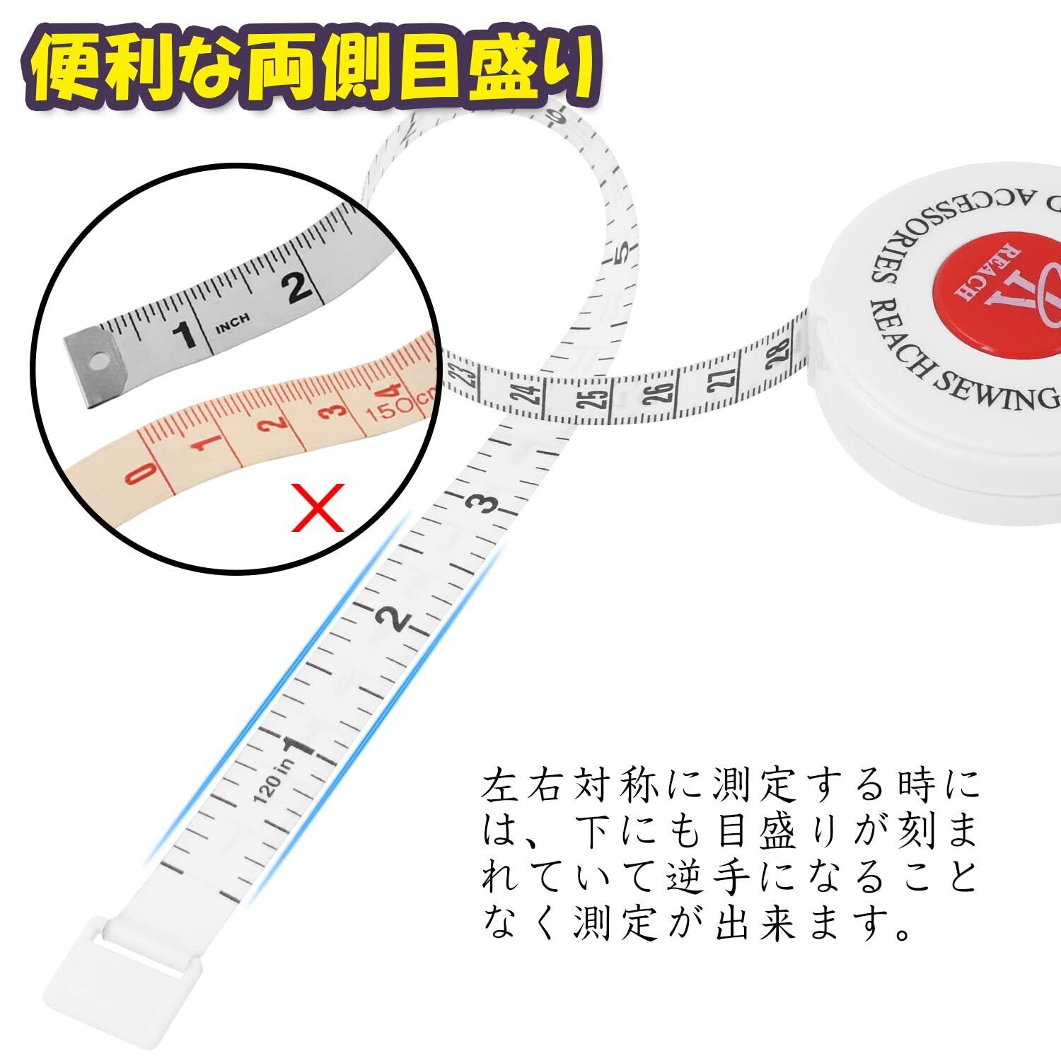 柔らかいメジャーは計るものの形に沿って測れるので、縫製、手芸、家具の測定など日常の様々な用途に使いやすいです。身体のサイズを測る時にも重宝します。