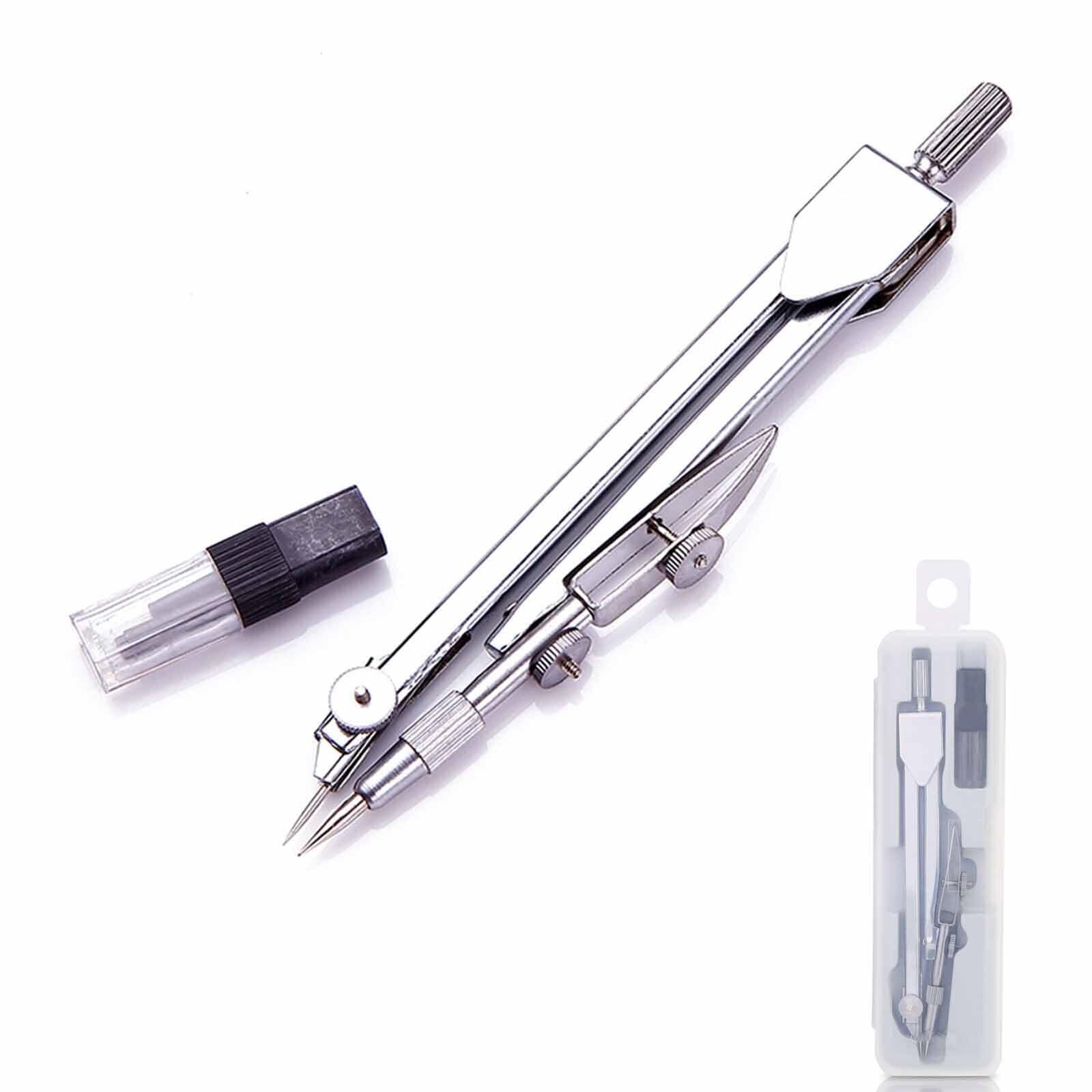 【新春セール】コンパス製図用シャープ学用品作図ツール金属製幾何学中学生文具2針小型事務用品透明ケース交換芯付き(シルバー)