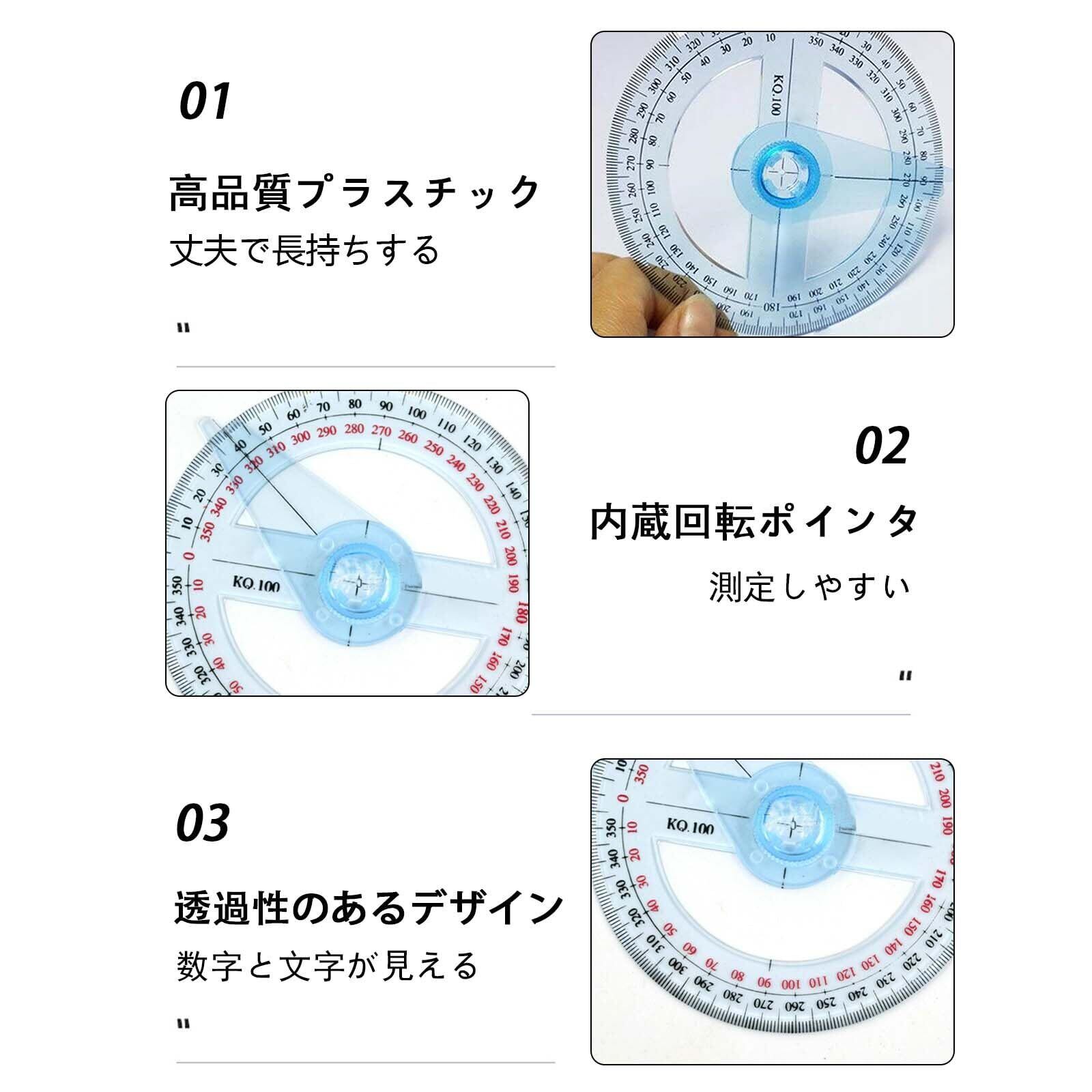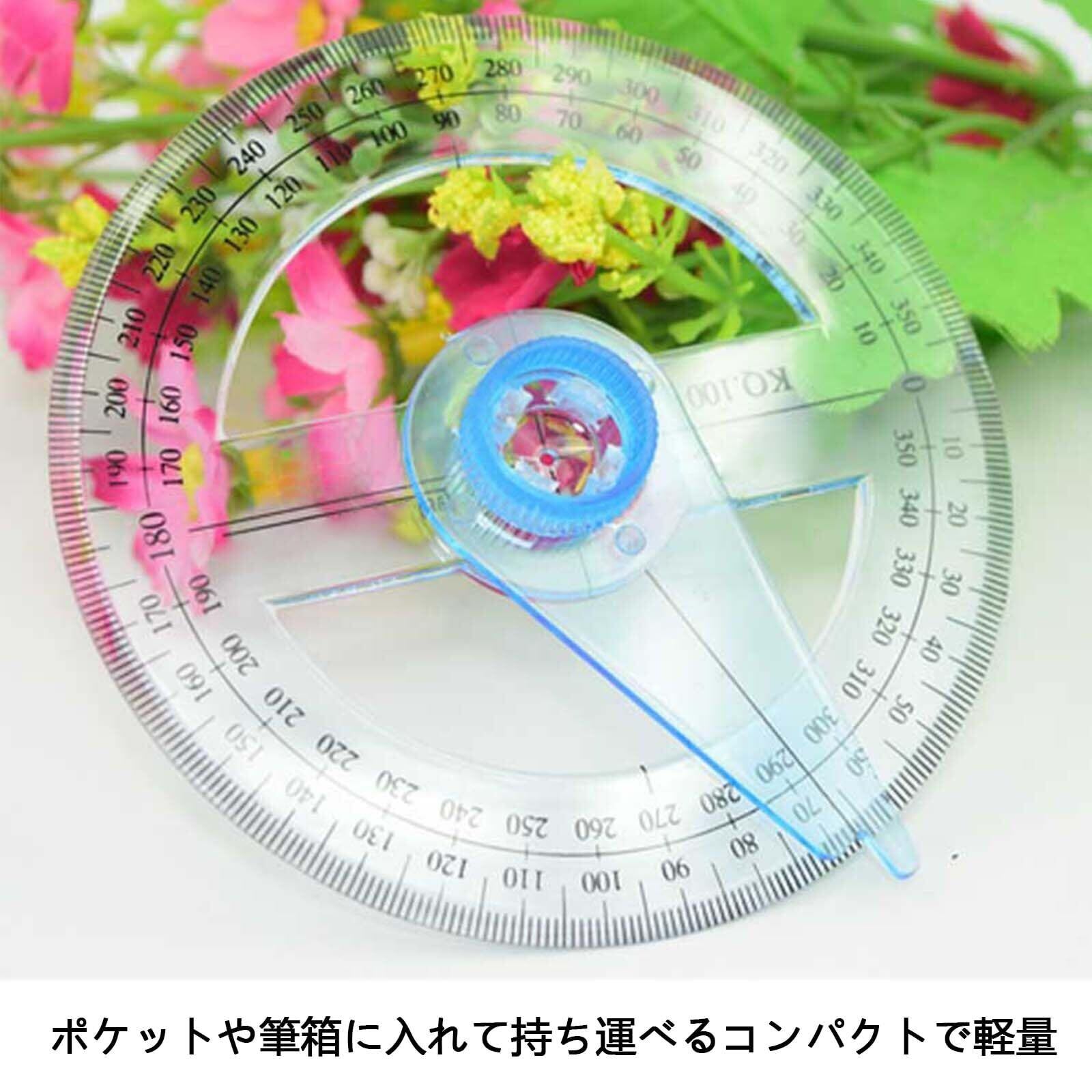 【実用的で便利】分度器 コンパクトサイズで軽量、持ち運びや収納が簡単です。 内蔵の回転ポインターは360度回転させることができ、生徒の数学の角度の理解を助けるだけでなく、円や角度を簡単に描くことができます。
