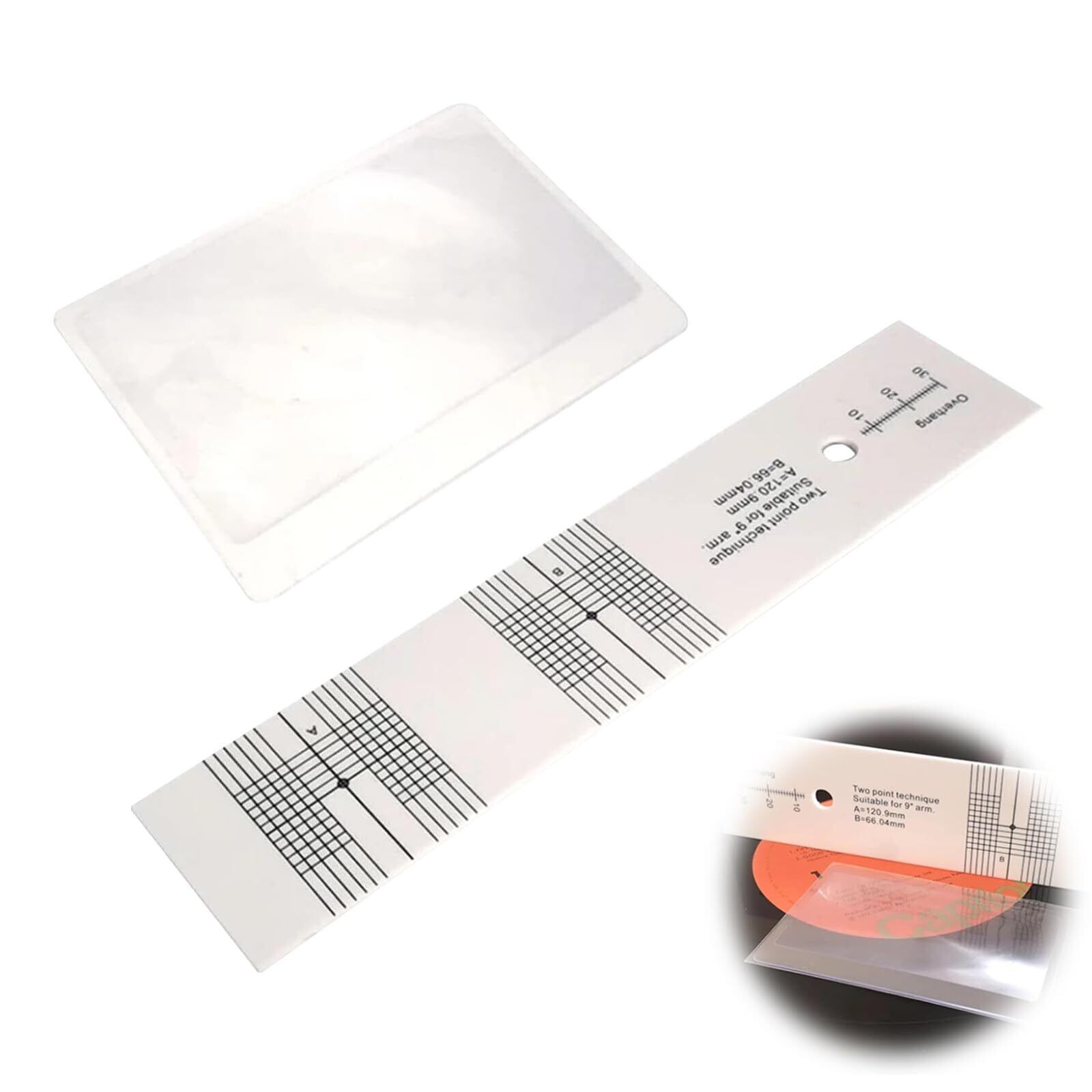 カートリッジアライメント分度器 レコードLPカートリッジ校正距離 アクリルゲージ分度器 カートリッジアライメントツール 高視認性カートリッジアライメント分度器ツール レコードプレーヤーアクセサリー ビニールレコード用 拡大鏡カード付き
