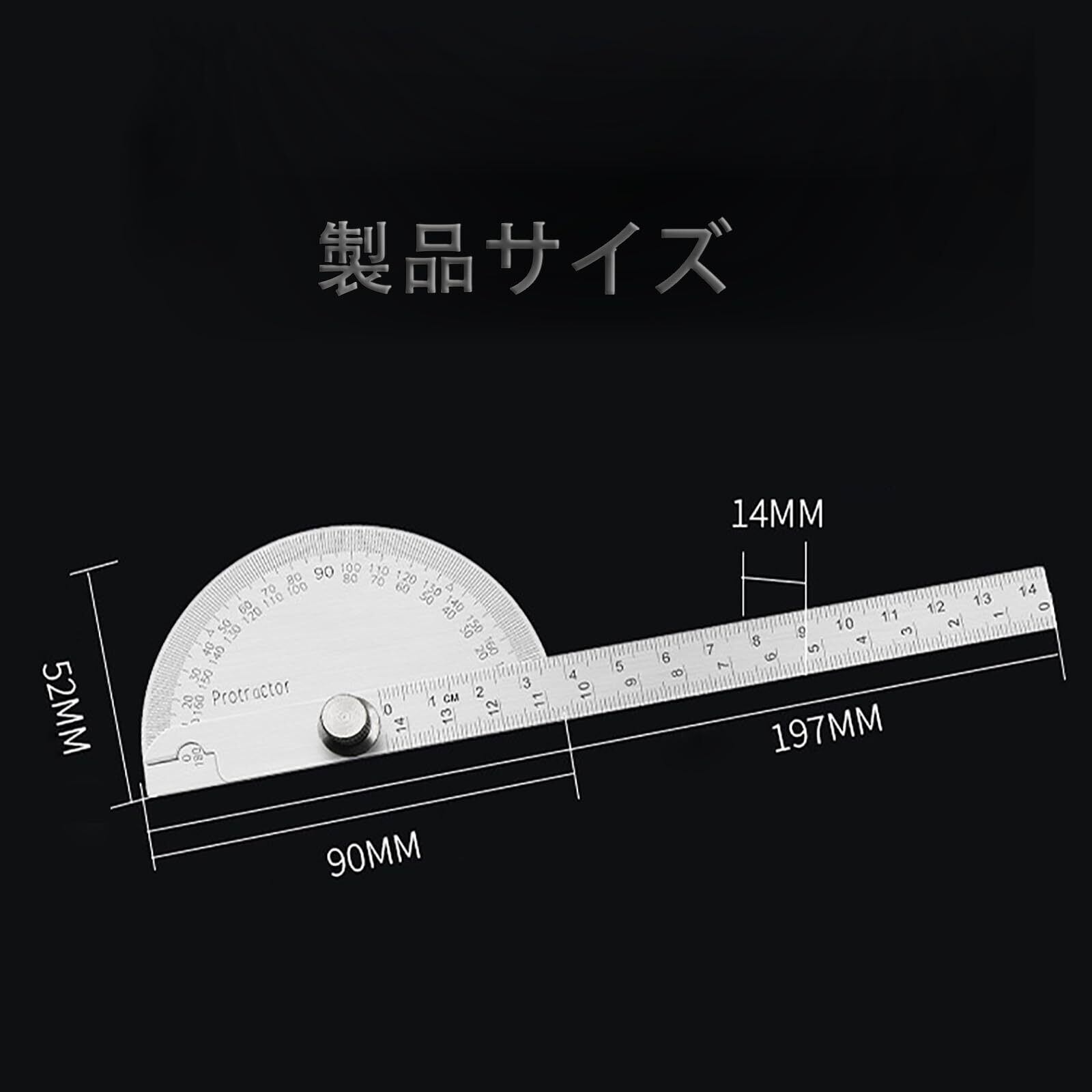 この分度器はあらゆるタイプの角度測定に適しており、ナットを調整することで 0 ~ 180 度回転できるため、定規を固定角度でロックして目的の角度を実現できます。