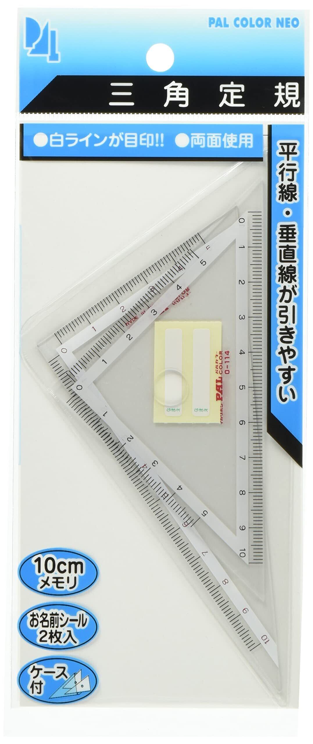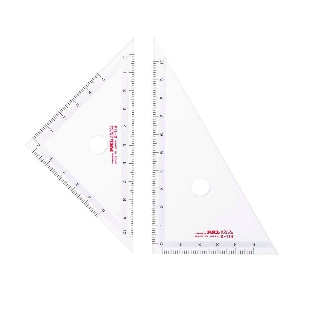 10cm目盛の二等辺三角形と直角三角形がセットになった商品。