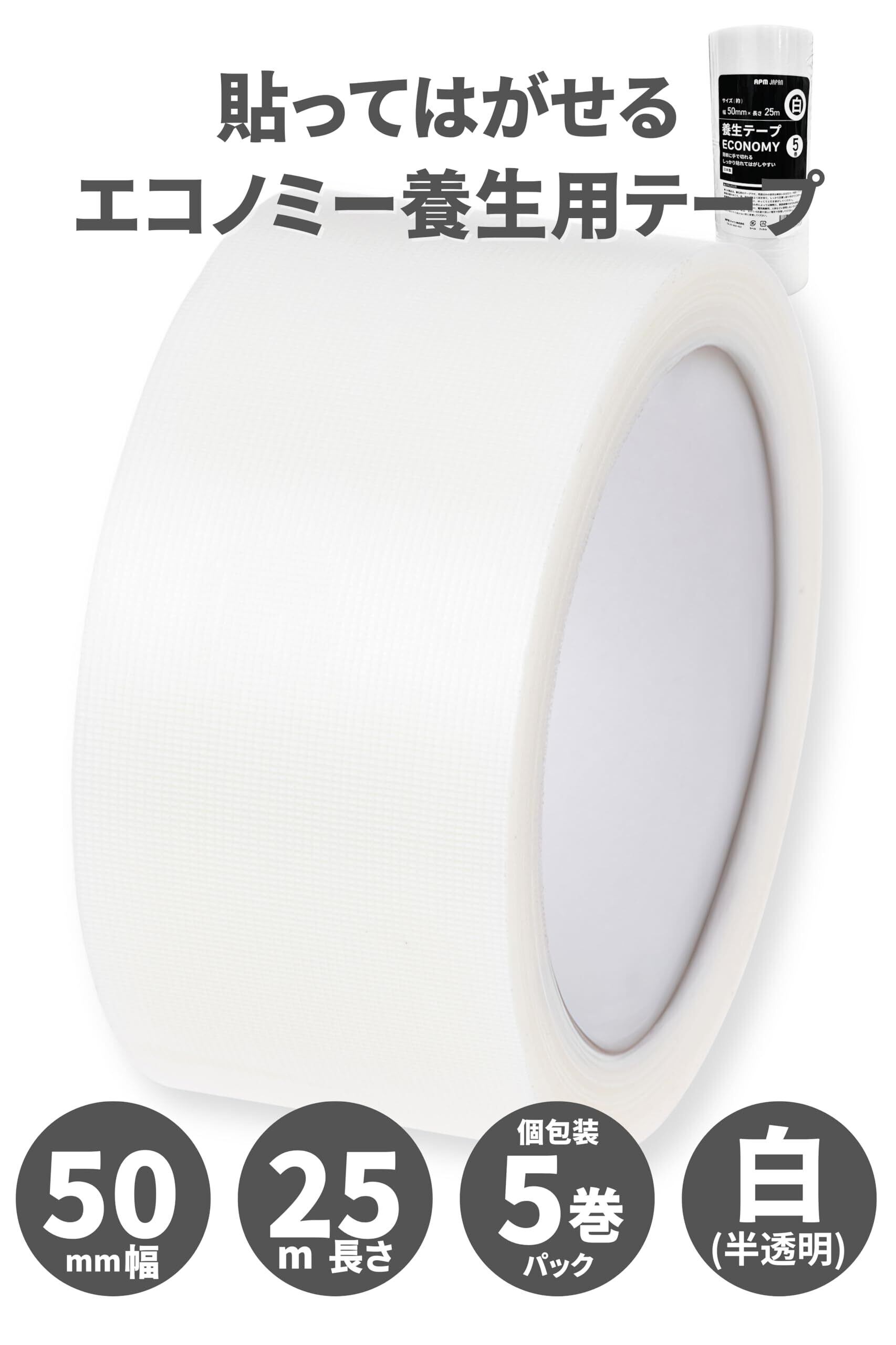 貼ってはがせるエコノミー養生テープ 万能タイプ 白(半透明) 50mm×25m 5個セット [養生・マスキングテープ]
