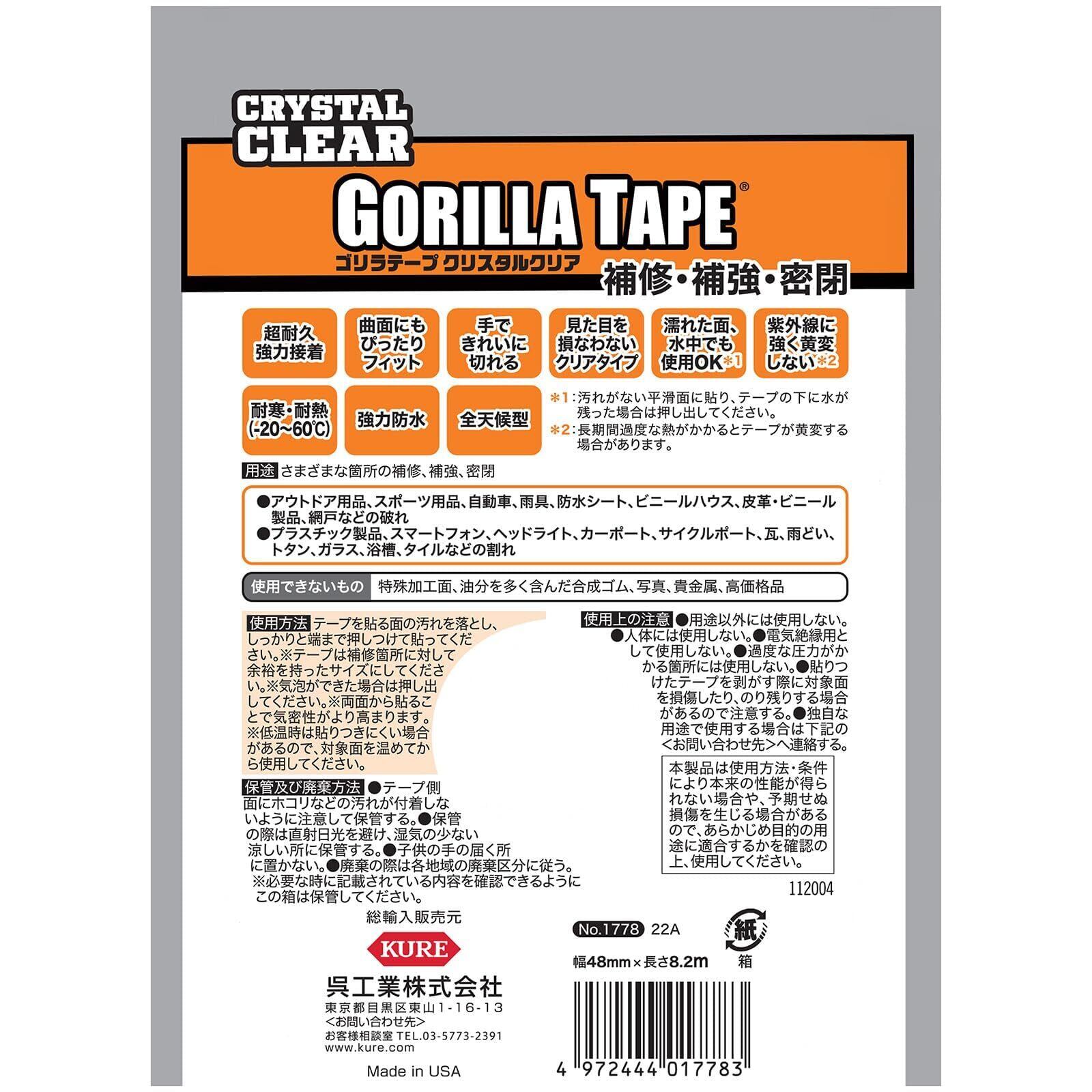 KURE(呉工業) ゴリラテープ クリスタルクリア 48mm×8.2m 強力多用途補修テープ 1778
