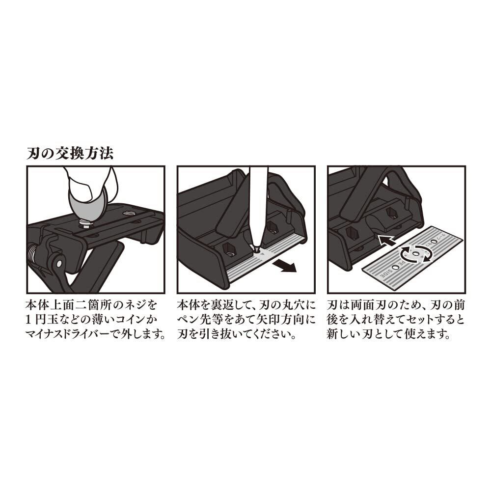 刃は両刃のため、刃の前後を入れ替えてセットすると新しい刃として使えます。