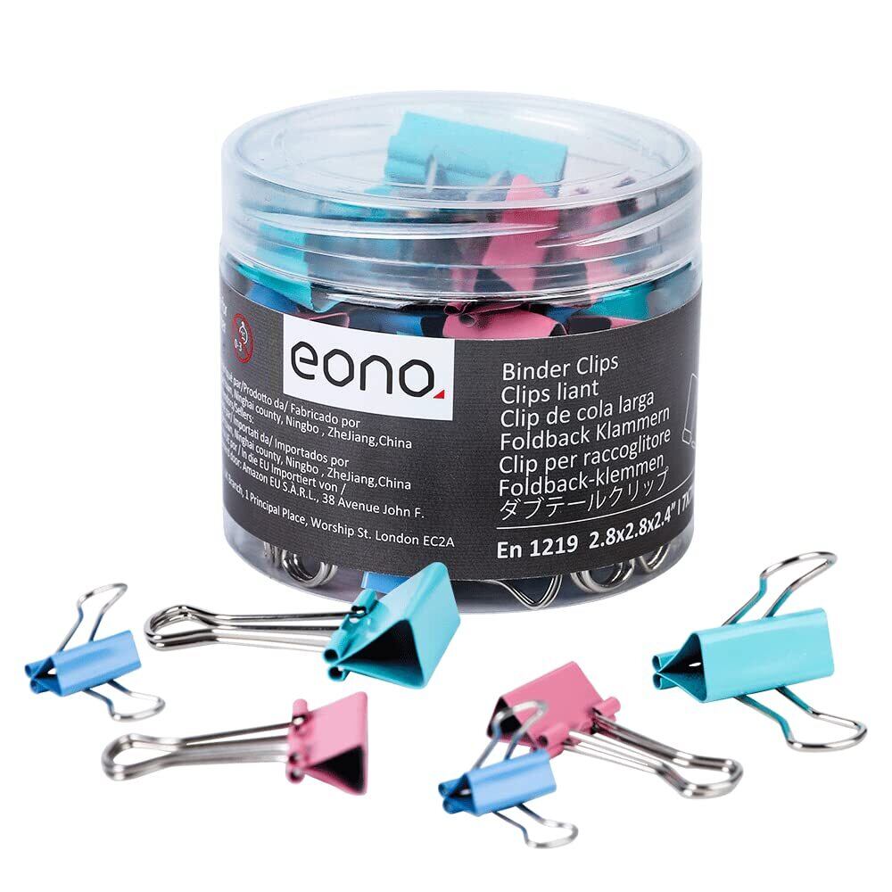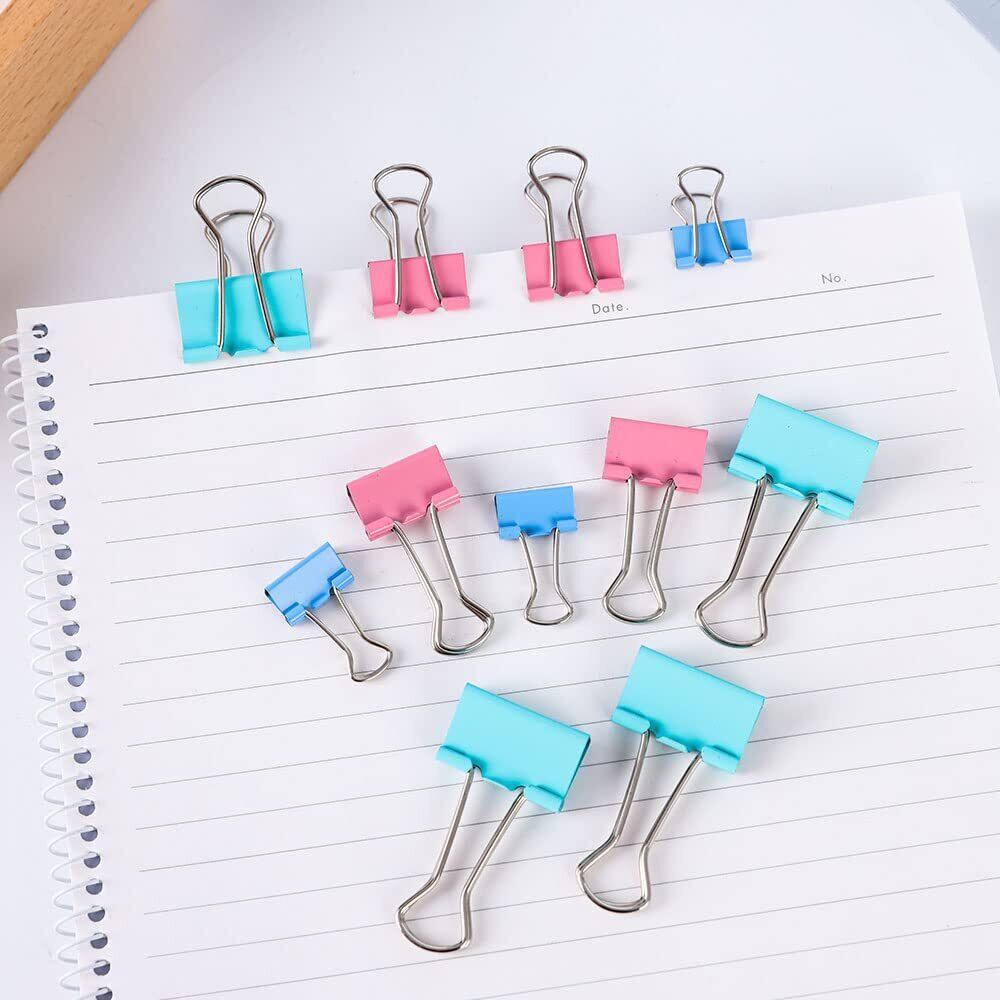 Eono(イオーノ) ダブルクリップ 3サイズセット 50個入り パステルカラー 収納ボックス付き 書類整理 家庭用 合金鋼 事務用品 オフィス用品 (カラー)