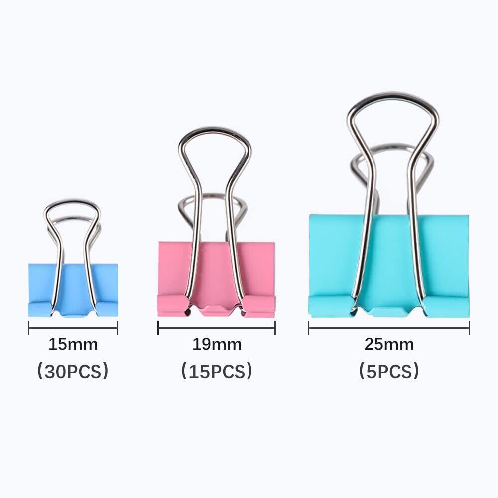 【便利な3サイズ&実用的な50個セット】15mm、19mm、25mmの3つのサイズが揃った50個セットで、日常的な書類整理や収納に最適。サイズごとに用途を分けられるので、効率的に活用できます。透明プラスチック製の収納ボックス付きで、使い終わった後の保管もラクラク。
