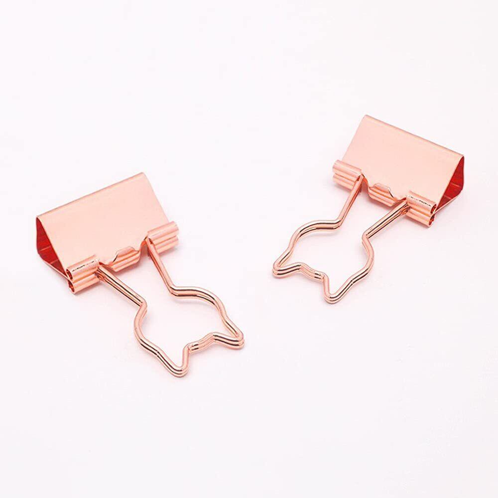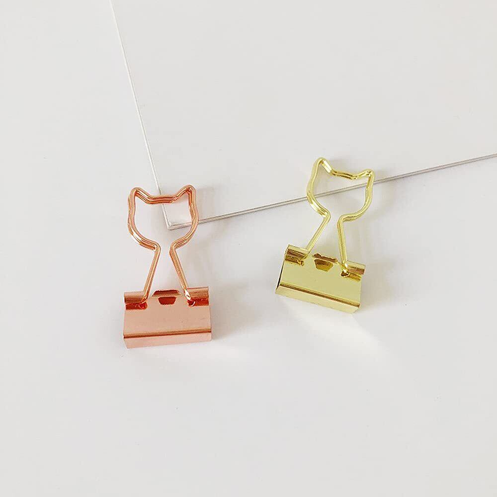 猫型 ダブルクリップ 小 19mm 12個入り ネコデザイン クリップ ペーパークリップ 金属製 書類整理 事務用品 オフィス かわいい (ローズゴールド+ゴールド)