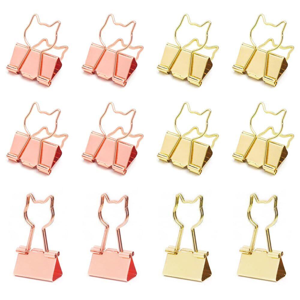 【2022最新】猫型 ダブルクリップ 小 19mm 12個入り ネコデザイン クリップ ペーパークリップ 金属製 書類整理 事務用品 オフィス かわいい (ローズゴールド+ゴールド)