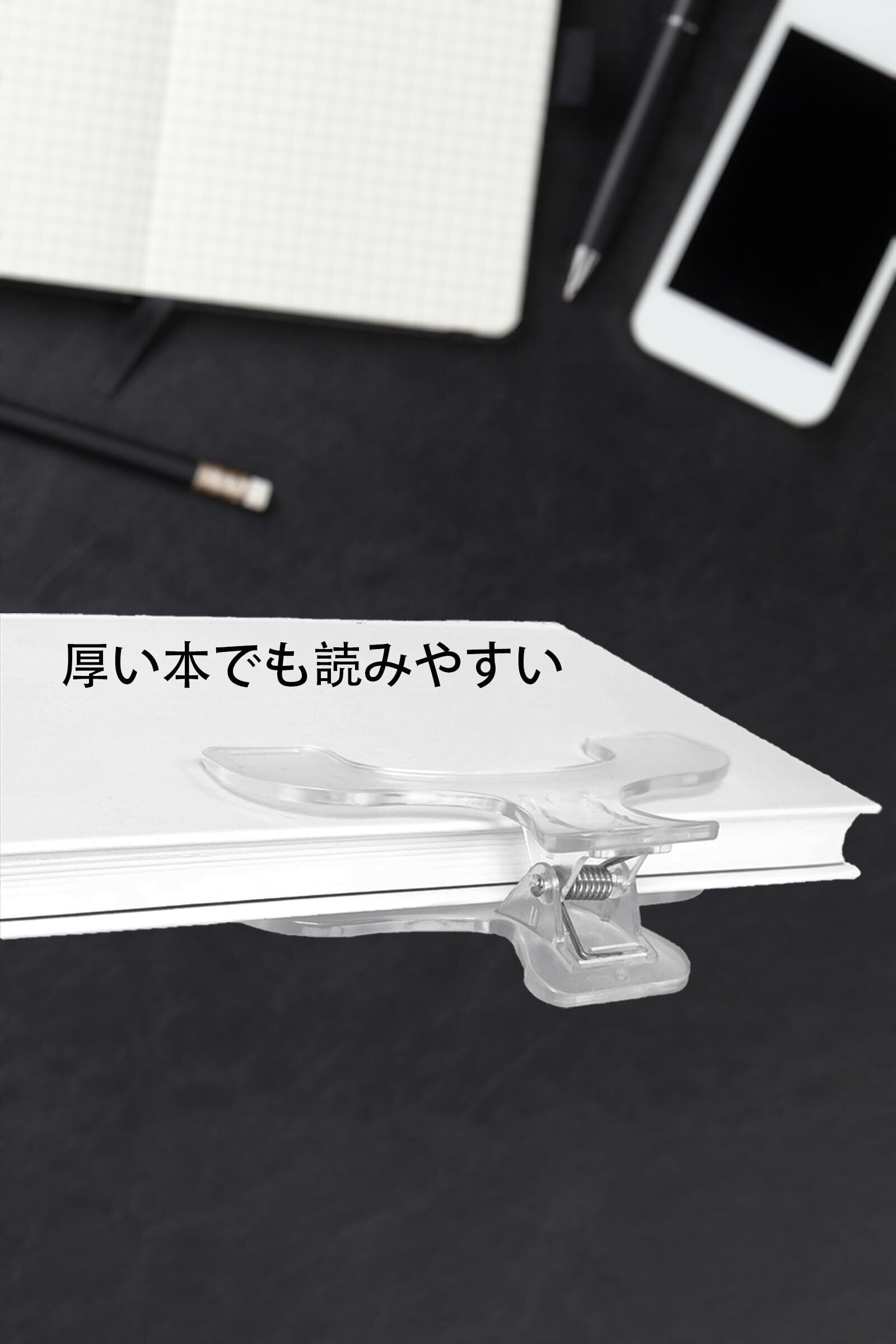 固定力:しっかりと本を開いたまま固定できる設計で、片手で簡単に装着できます
