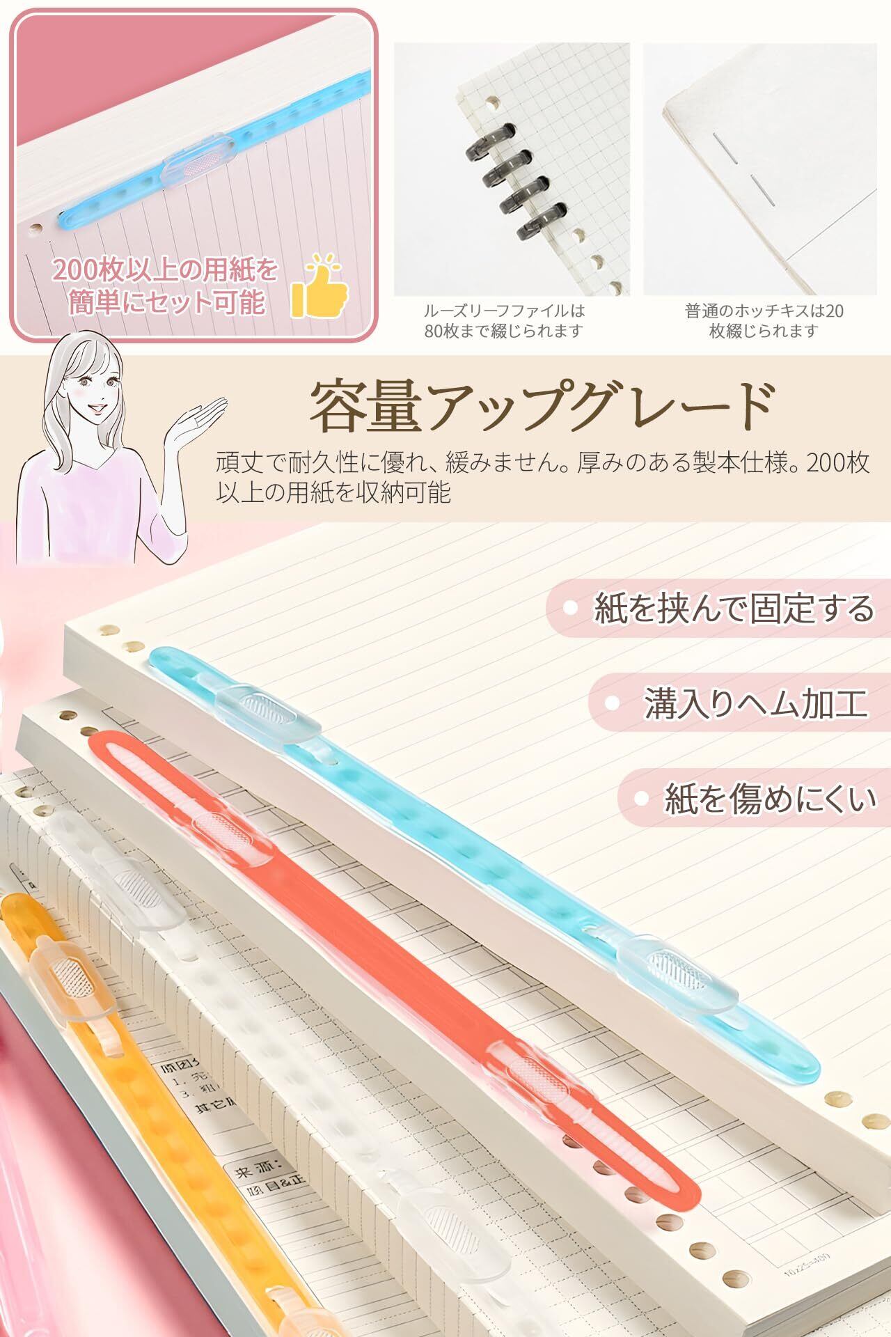 【紙を傷めない & 整理術】 溝への差し込み部分が巻き込み加工されており、紙の穴を傷めず破れを防止。 学校、会社、家庭など多様な場面で活躍。書類、資料、レシピ帳、フォトアルバムの整理整頓からDIY作業まで、あらゆる用途に最適です。