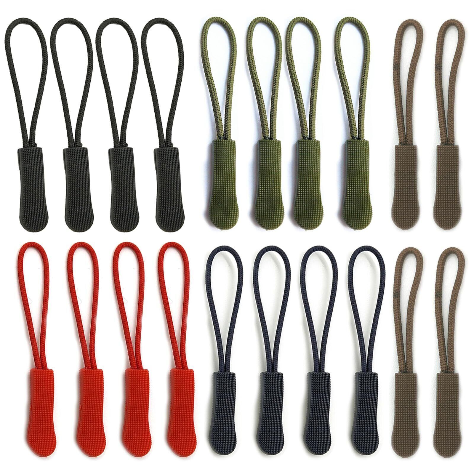 BRIIKPP ジッパータブ 20個セット ジッパープル 取付簡単 実用的ファスナーパーツ ブラック カーキ アーミーグリーン ブルー レッド各4个