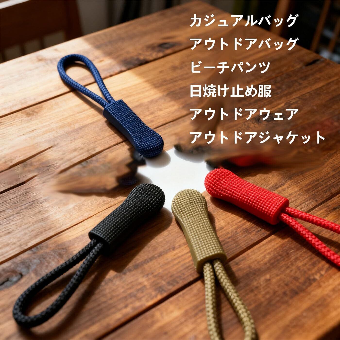 【色と数】ブラック、ミリタリーグリーン、ネイビー、コーヒーカラー、レッドの5つのクラシックカラーを含むファスナーロープは、各色4つ、合計20個で、異なる色の組み合わせに対するニーズを満たしています