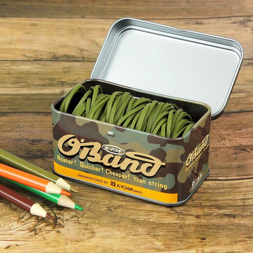 オーバンド カモフラ缶 30g #16 カーキ (緑) GGC-040-CF 共和 輪ゴム 大きさは一般的、太さは2倍