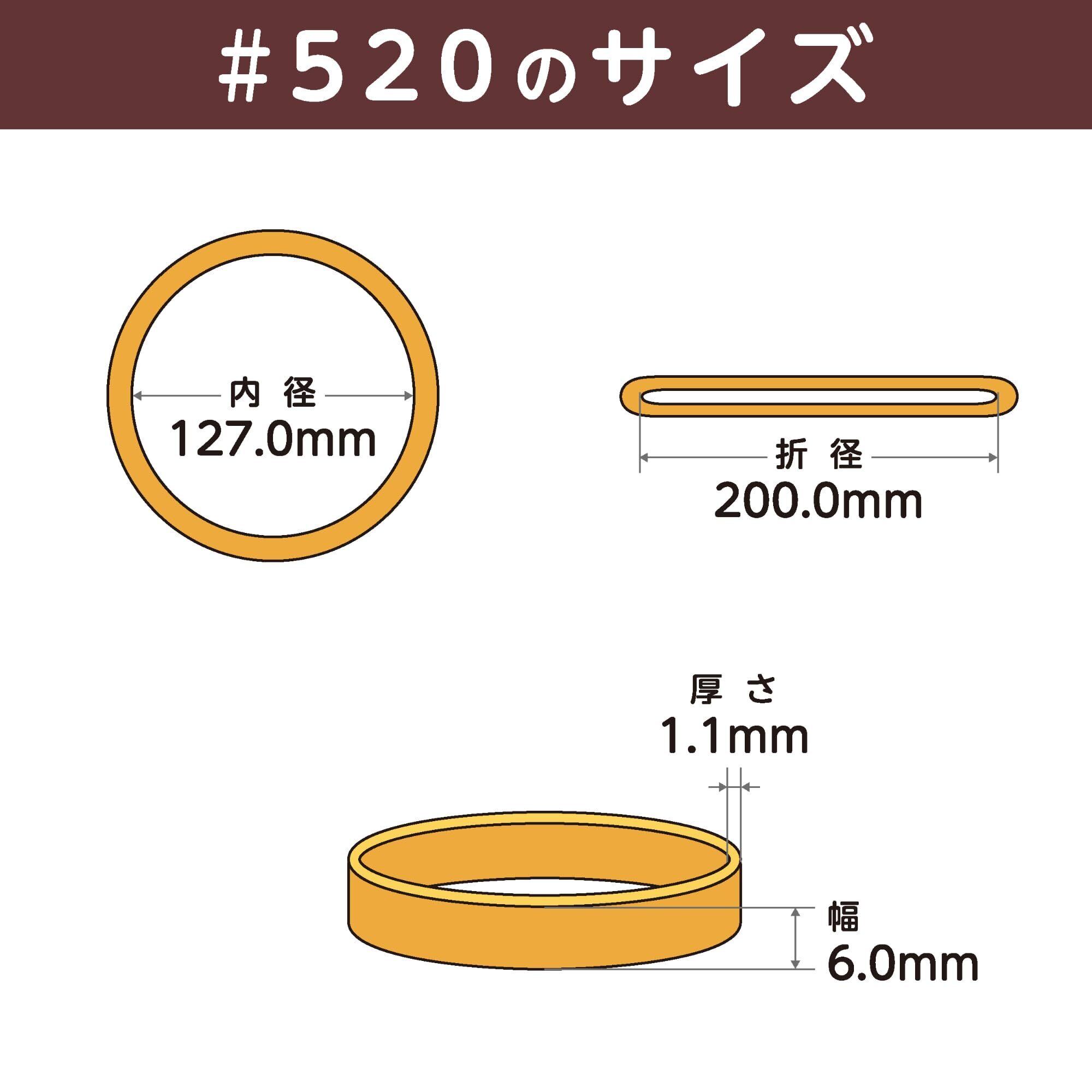 輪ゴムのサイズ : #520 ( 520号 ) 内径127mm / 折径200mm / 切幅6mm / 厚さ1.1mm