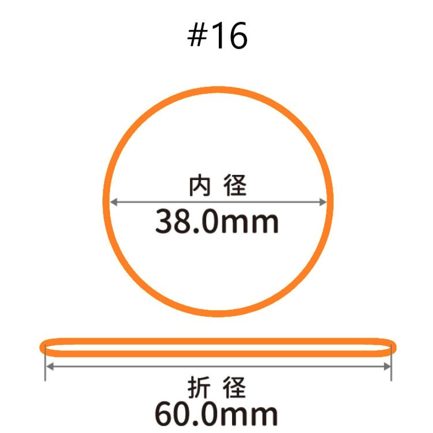 輪ゴムサイズ #16 : 内径約38mm / 折径約60mm / 切幅約1.1mm / 厚さ約1.1mm