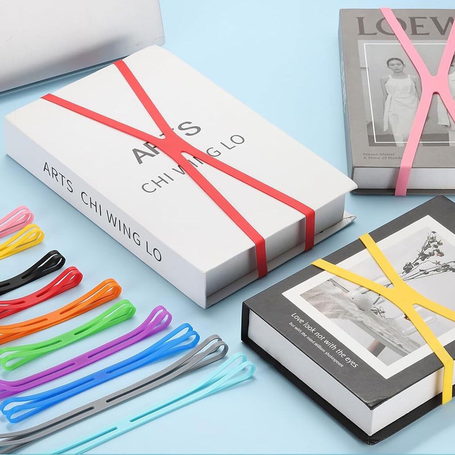 【幅広い用途】シリコンバンドのh字型デザインにより、さまざまな形やサイズに適応でき、スポーツ用品から家庭用品、シリコンバンド、オフィス用品、食料品バッグホルダーまで、さまざまなアイテムを縛ったり、固定したり、吊り下げたりするのに適しています