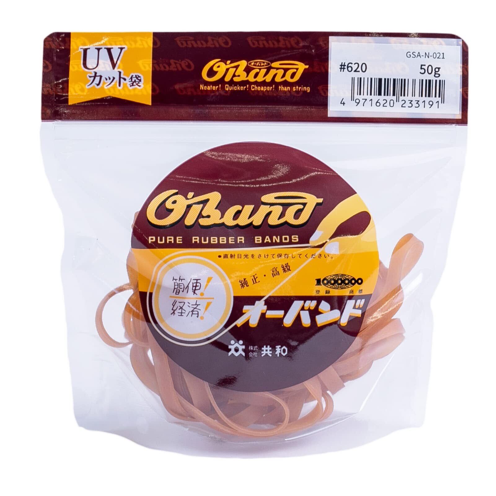 【新春セール】輪ゴム オーバンド #620 < 50g透明袋 > アメ色 太い幅 少量 包装 ゴムバンド 全サイズ73 共和