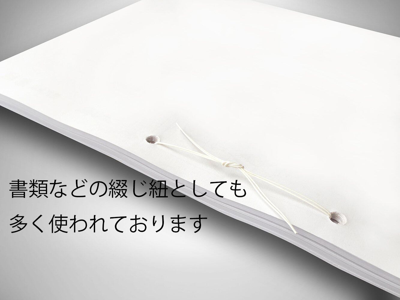 現在では安価ですので書類綴じの紐としても多く使われております。