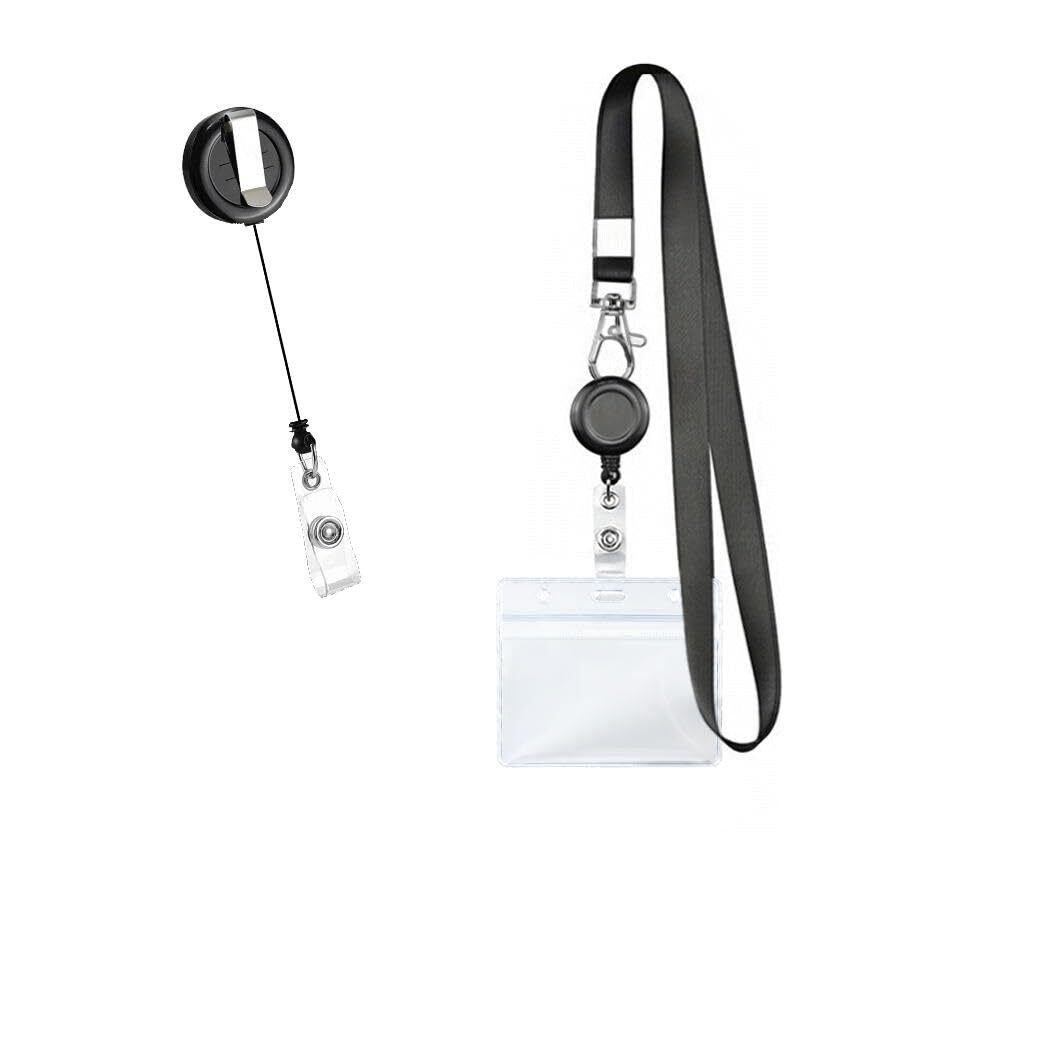 [LaLa sandia] ID カード ホルダー 【リール式】 ネックストラップ 【名刺サイズ】 吊り下げ イベント スタッフ パス 名刺 社員証 ケース 入れ 首かけ 展示会 両面用 防水 セット MID-S (2WAY 横型1セット)
