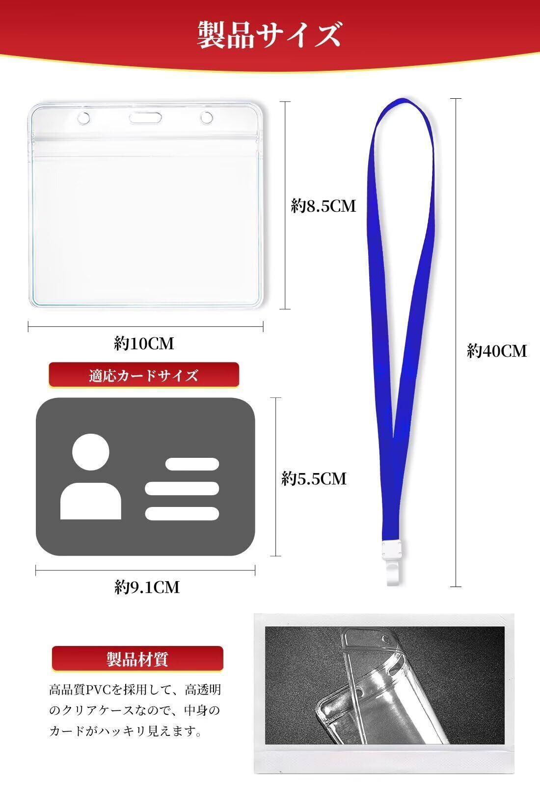 首に優しい平ひもを採用首に優しい平ひもを採用で、長時間付けても首が痛くないです。ネックストラップ全長約40CM 製品サイズ約10 x 8.5cm 適応カードサイズ約9.1x 5.5cm
