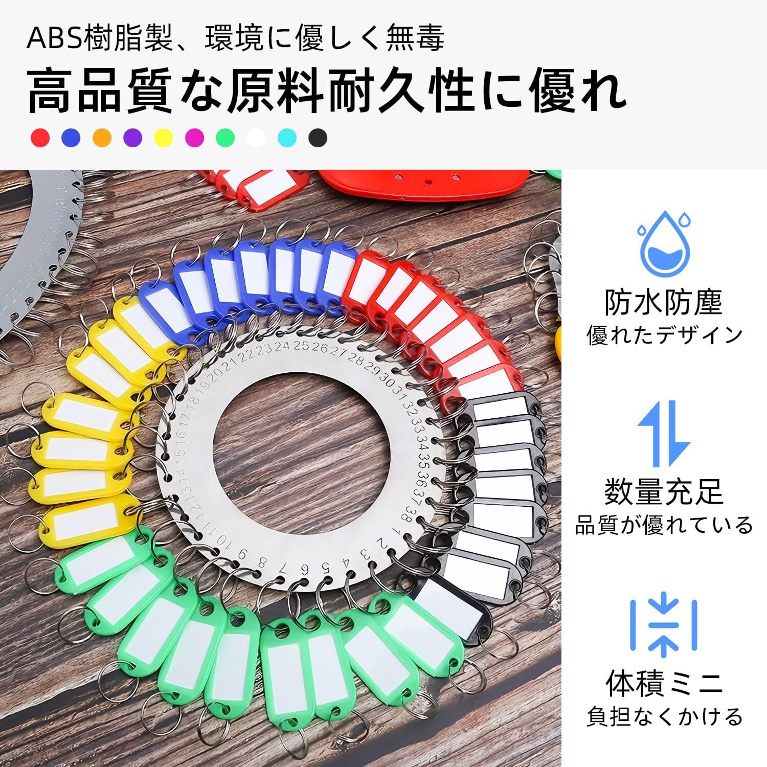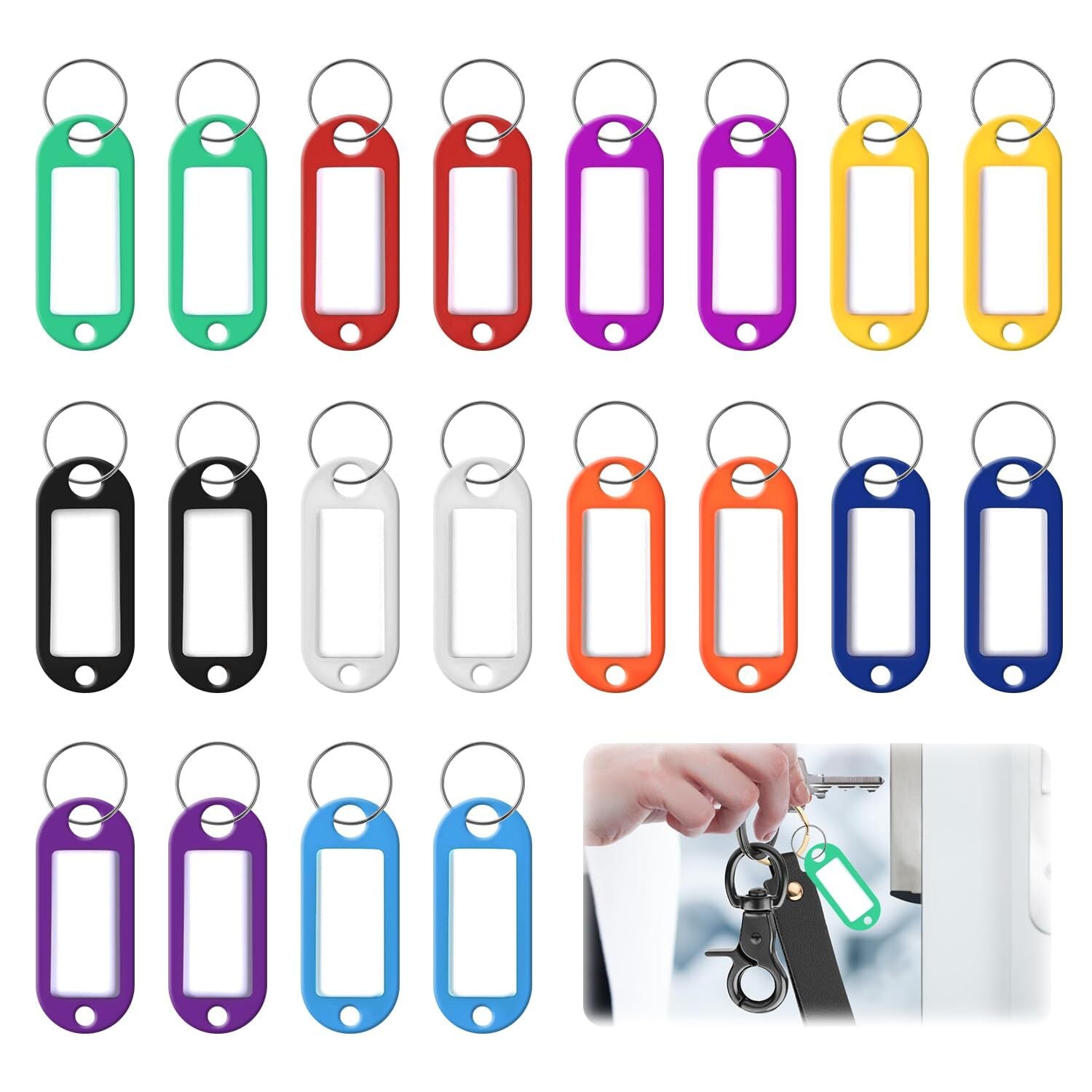 【数量とカラーバリエーション】業務、家庭用に便利なプラスチック製キーホルダータグです。数量は20個装または。お好みに合わせて選べる10色の豊富なカラーバリエーションが特長です。*ご注意ください:製品は10色混装となっており、各色の数量は必ずしも同じではありません。