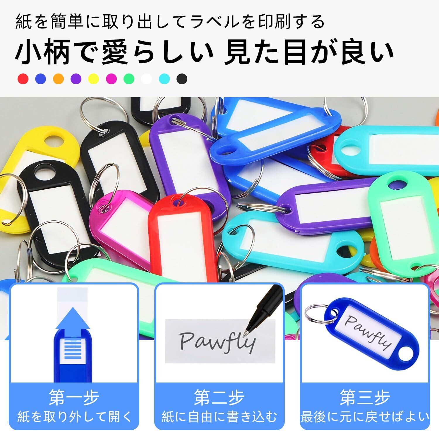 【多岐にわたる活用法】鍵の見分け付けはもちろん、USBメモリやペットの名札、園児の持ち物タグなど、様々な物の整理・管理にご活用いただけます。施設での業務用としてもおすすめです。