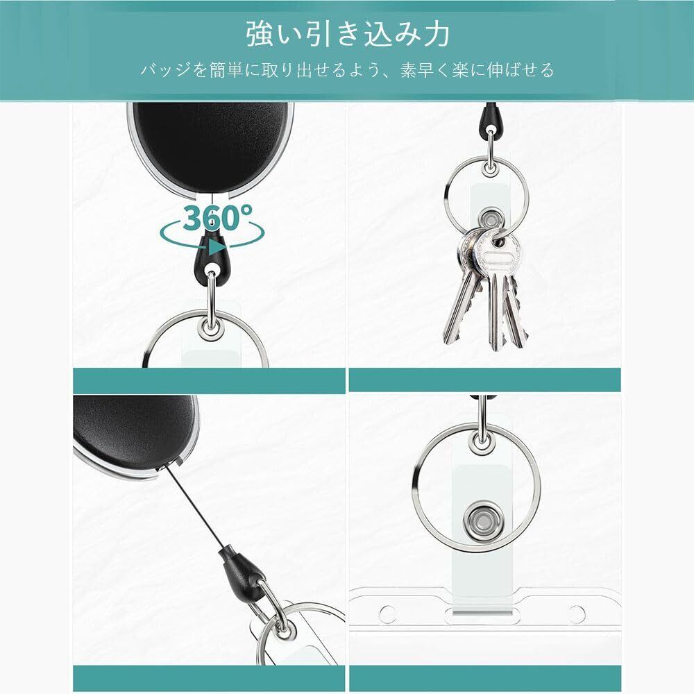 1.【商品仕様】パッケージには縦型透明プラスチックバッジホルダー2個とバッジリール2個が含まれます。 IDホルダーは2.1 x 3.5インチで、ほとんどのクレジットカードサイズの標準カードに適しています。 2.【調整可能・調整可能な長さ】高さに合わせて長さを自由に調節できます。ストラップには、巻き取り式のリードが内蔵されていて。巻き戻しが強く引っ掛かりも無く、スムーズに伸びるリールの紐は特殊強化タイプで、切れにくく丈夫で長持ちする点も魅力です。ストラップの長さを調整可能、手を離すと自動的に戻ります。定期券に応用すれば、リードを引っ張るだけで改札機にタッチできる便利さもあるでしょう。どのような服装、小物にもマッチしますので、男女問わずに活用でき、また世代を超えて幅広い年齢層にお使いいただけます。ホルダーとネックストラップの間の伸縮性リールが日常での使い勝手を向上させています。 3.【スタイリッシュ&頑丈】横型タイプは、見た目のおしゃれだけでなく、胸ポケットに入れられることでも好評です。このエレガントなカードホルダーは、日々頼りになる、誇り高くプロフェッショナルで自信を持って使えます。 4.【耐久性バツグン】IDホルダーはポリカーボネート製です。 強い耐衝撃性、優れた強度と靭性を持っています。長さとしては身長や体型にもよりますが平均的な成人男性のみぞおち部分にカードホルダーが来るようなのイメージとなります。 5.【通勤・通学のパートナー】B8サイズの名札、ID/ICカード、社員証、学生証、定期券、交通系カード(Suica、PASMO、TOICA、ICOCAなど)、名刺、会員証、免許証、保険証などを収納でき、教師、学生、店員、会社員などの方々に適して、毎日の通勤・通学にはピッタリです。母の日、誕生日、クリスマス、就職祝い、進学祝い、入学祝いなどのちょっとした贈り物としても最適です。