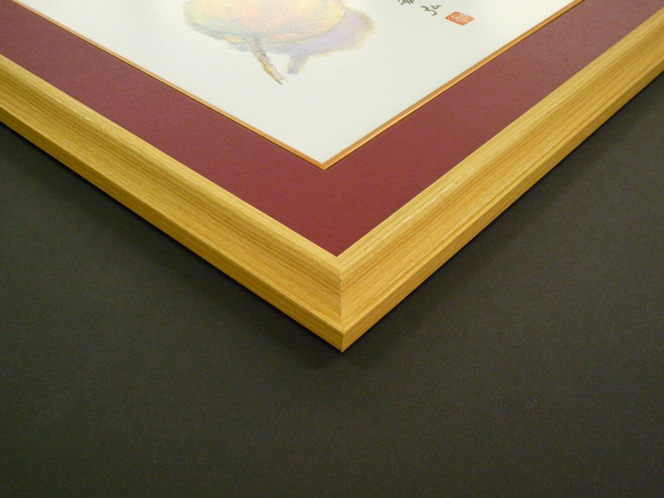 木目調の木製フレームに紙マットを入れた洋室にも和室にもよく合う色紙額。