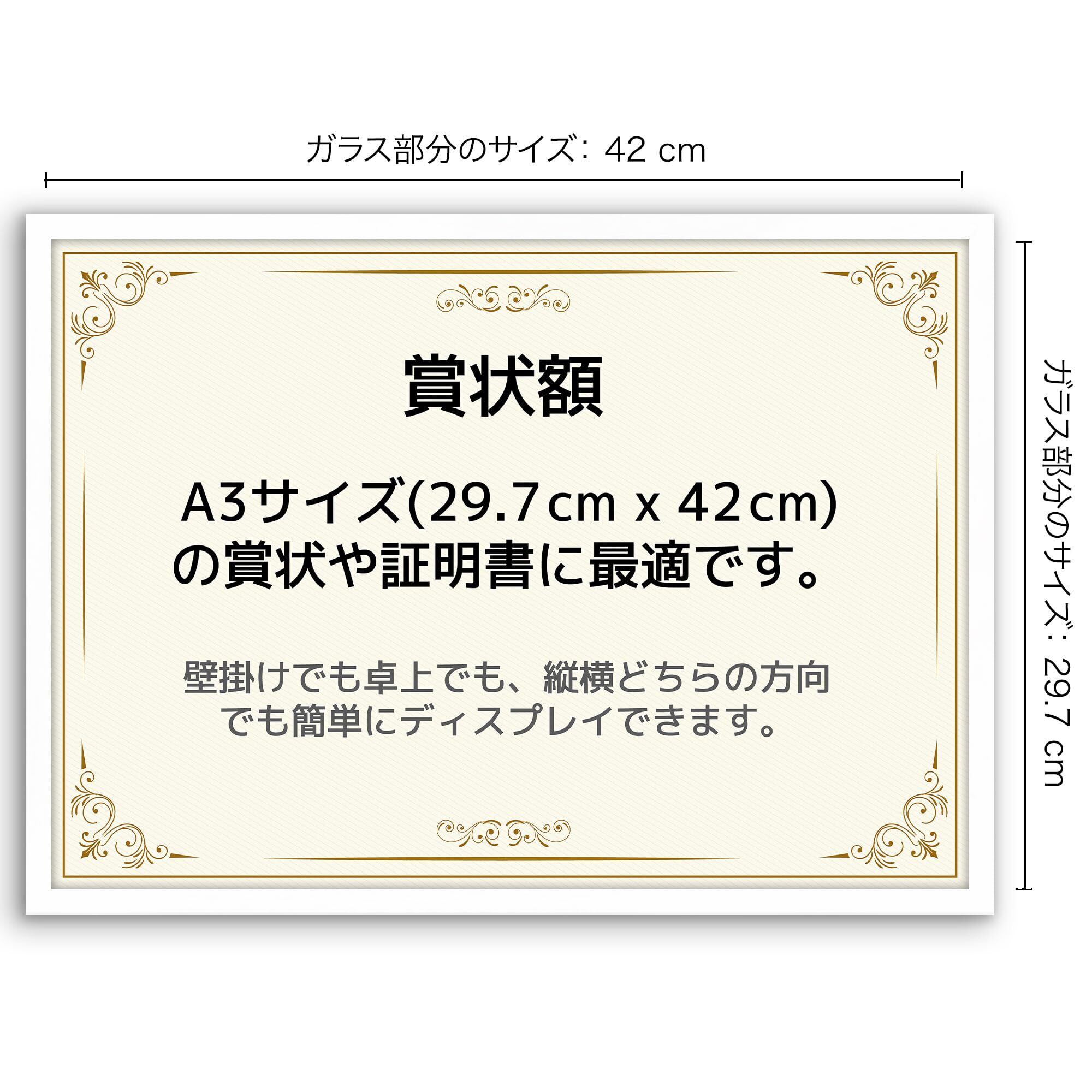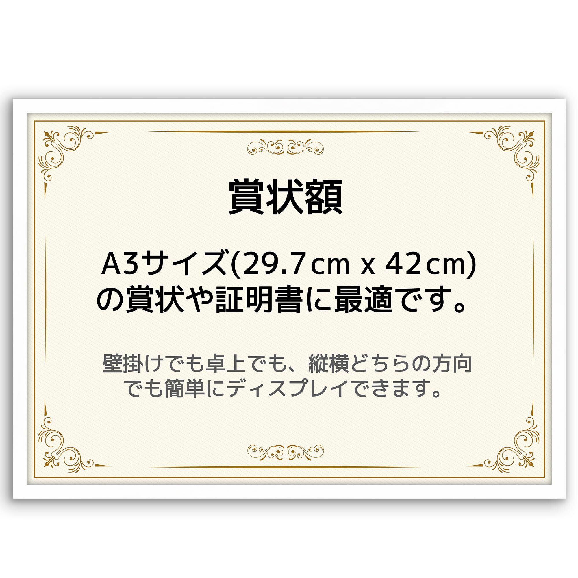 【理想的なサイズと耐久性のある素材】 このA3賞状フレームは、スリムモールディング(細枠)を採用し、軽量で耐久性に優れたPVC素材を使用しています。ホワイト仕上げのデザインが、特別な賞状やお気に入りの写真を美しく飾ります。
