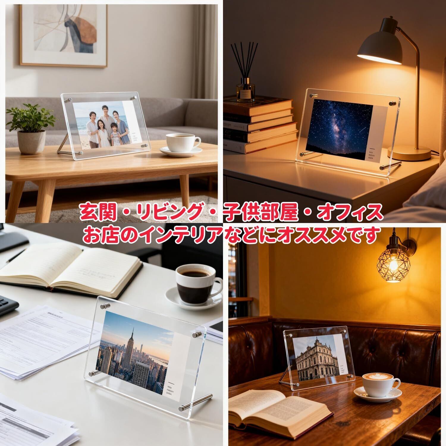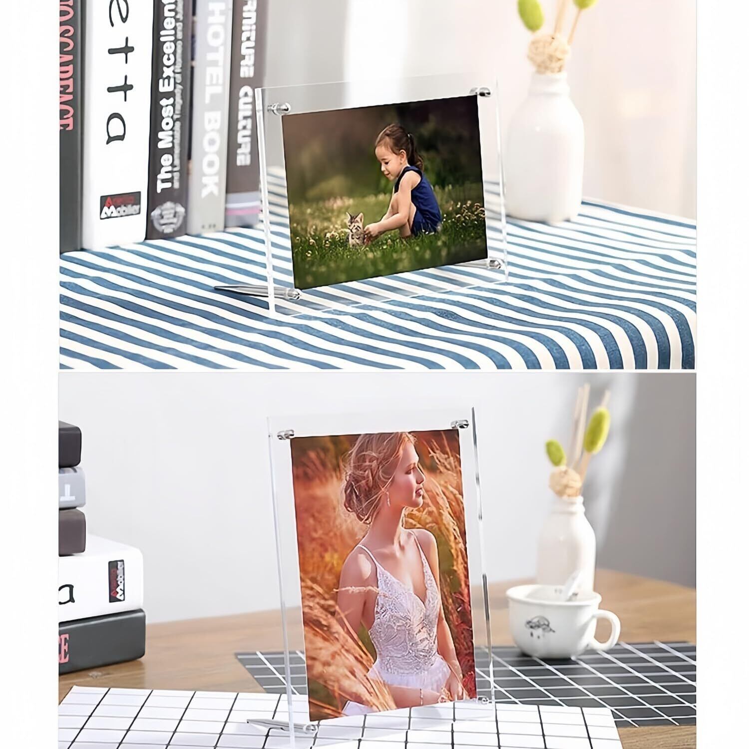 【フォトフレーム アクリル - 横置き&縦置き】アクリルフレーム a4 写真の形に合わせて置き方を変更でき、横置きも縦置きも可能で、寝室や書斎などに置くことも可能です。