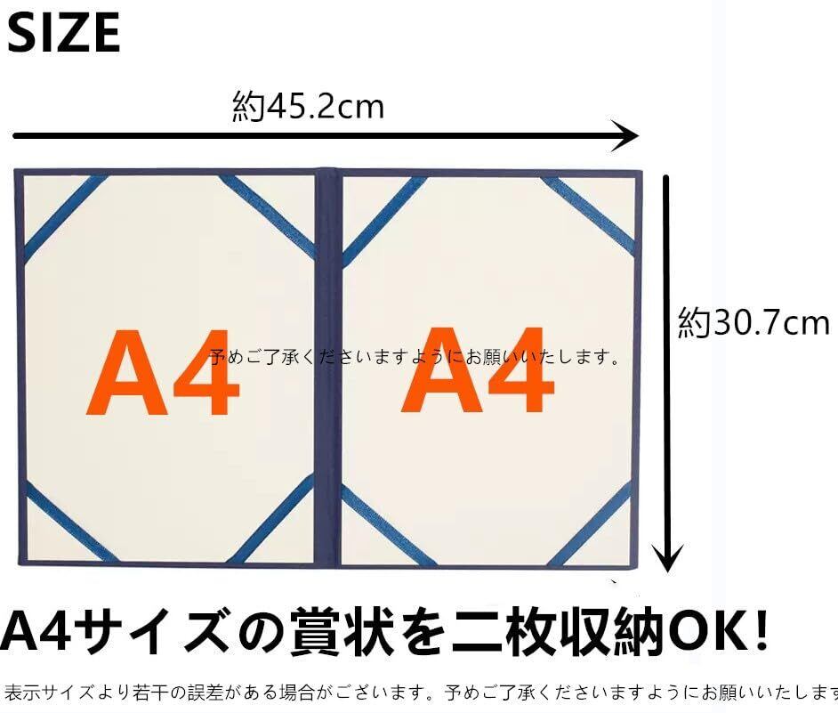 【2022最新】賞状ファイル 証書ファイル 賞状ホルダー 賞状カバー 感謝状 卒業証書 布 A3 A4 二つ折り 紺