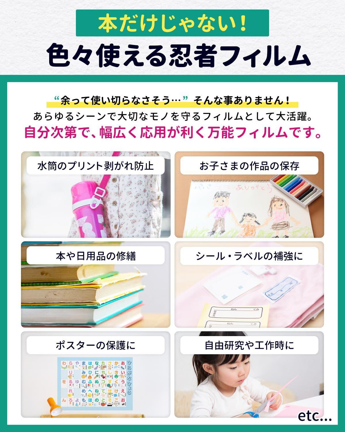【特価商品】忍者フィルム 【図書館司書推薦】 UVカット 本 カバーフィルム 35cm×5M巻 A4対応 透明 製本カバー 図書館 絵本 教科書 保護フィルム sororito
