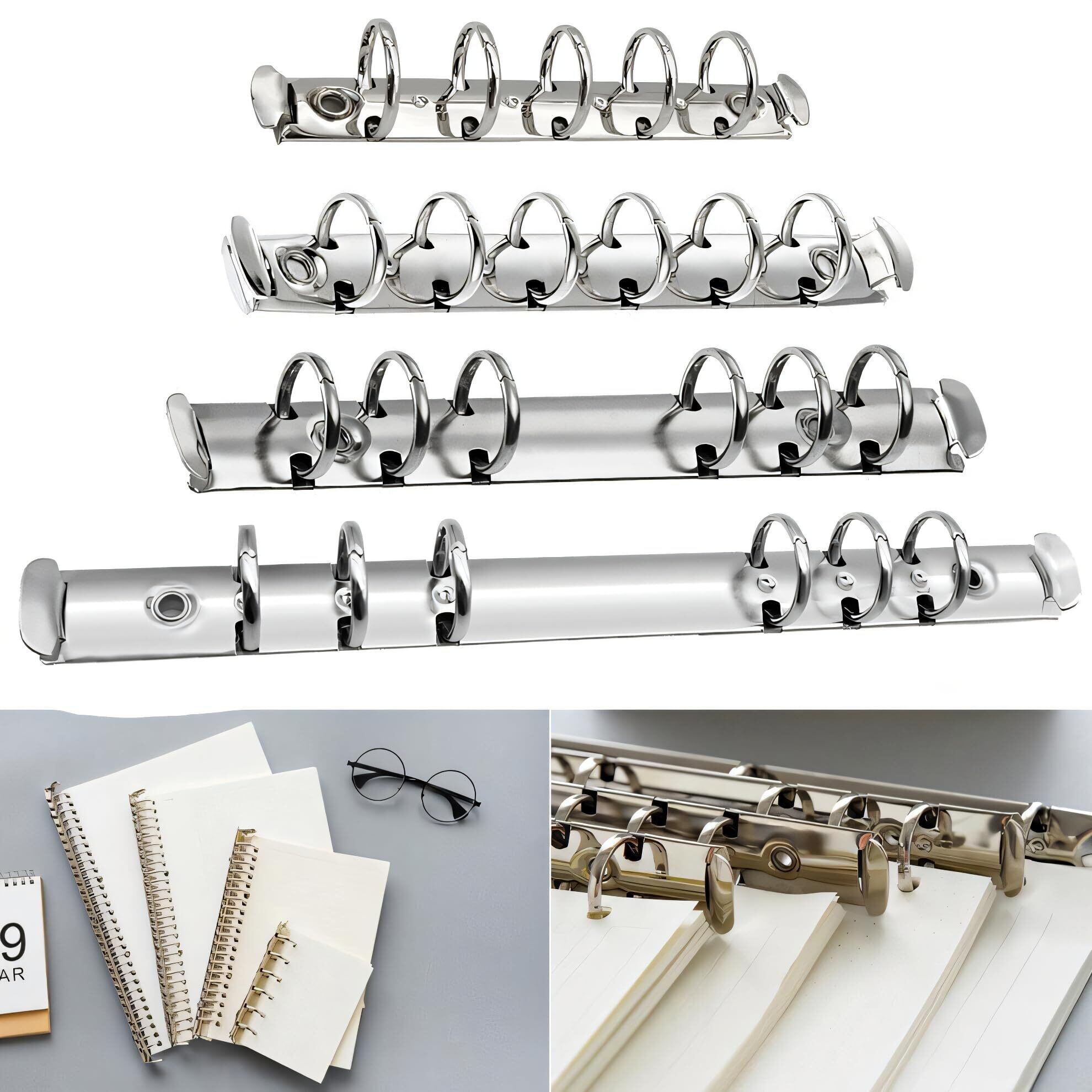 A5 多穴式リング バインダー金具 背なしタイプ 6穴【A5-6-20/20】20mm×225mm リング内径20mm 鉄ニッケル鍍金 シルバーシカゴスクリュ付き 手帳 製本 (A5-6穴)