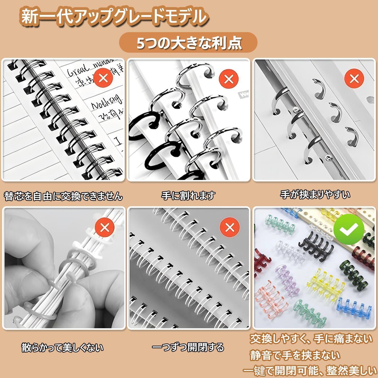 幅広い応用大容量ルーズリーフバインダー!DIY手帳から書類まで、幅広く使えます。単語帳、学習カード、カレンダー、旅行日記…整理したい物があれば、これ一本でOK。教師や学生の方にもぴったりで、毎日の豊かな生活をサポートするバインダーリングセットです。