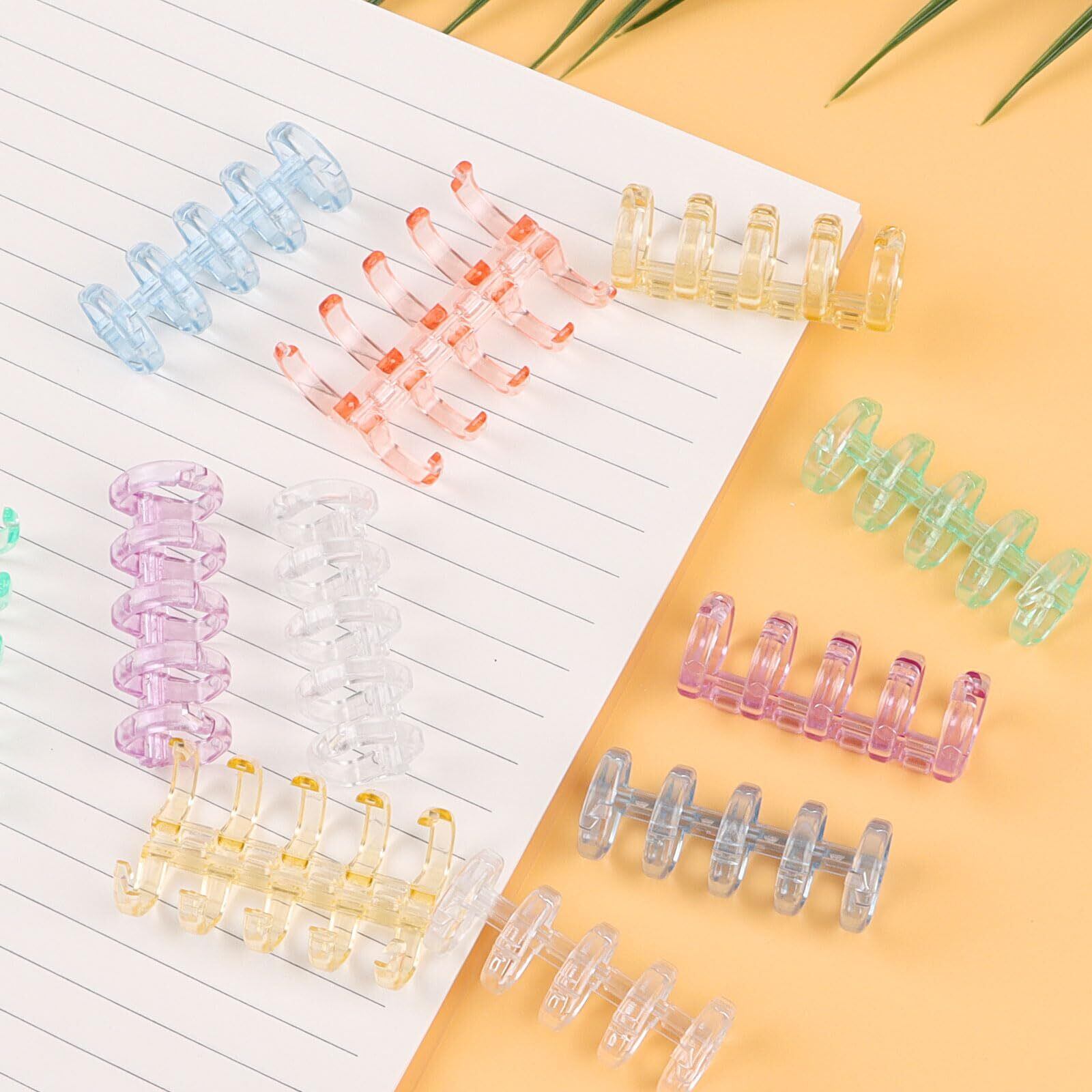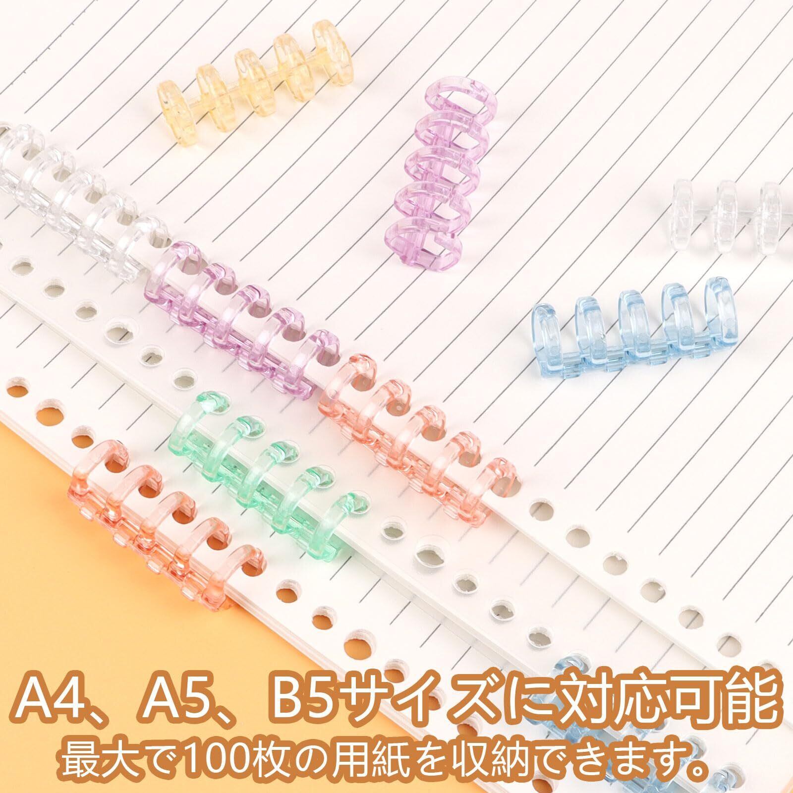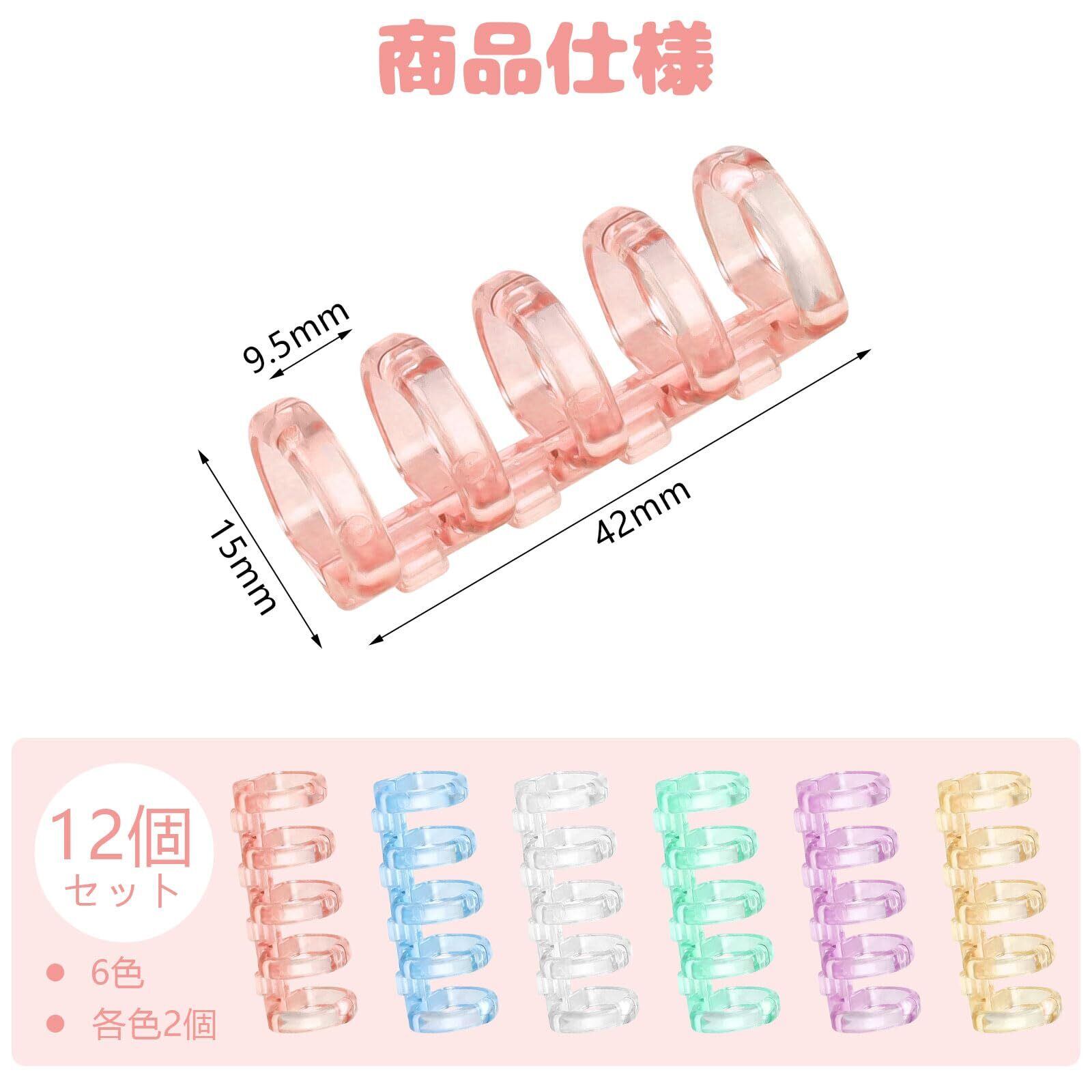 CCINEE ルーズリーフ リング バインダー 製本用とじ具 12個セット 6色 5穴 取り外し可能 プラスチック製 A4 A5 B5製本用 手帳 ファイル整理