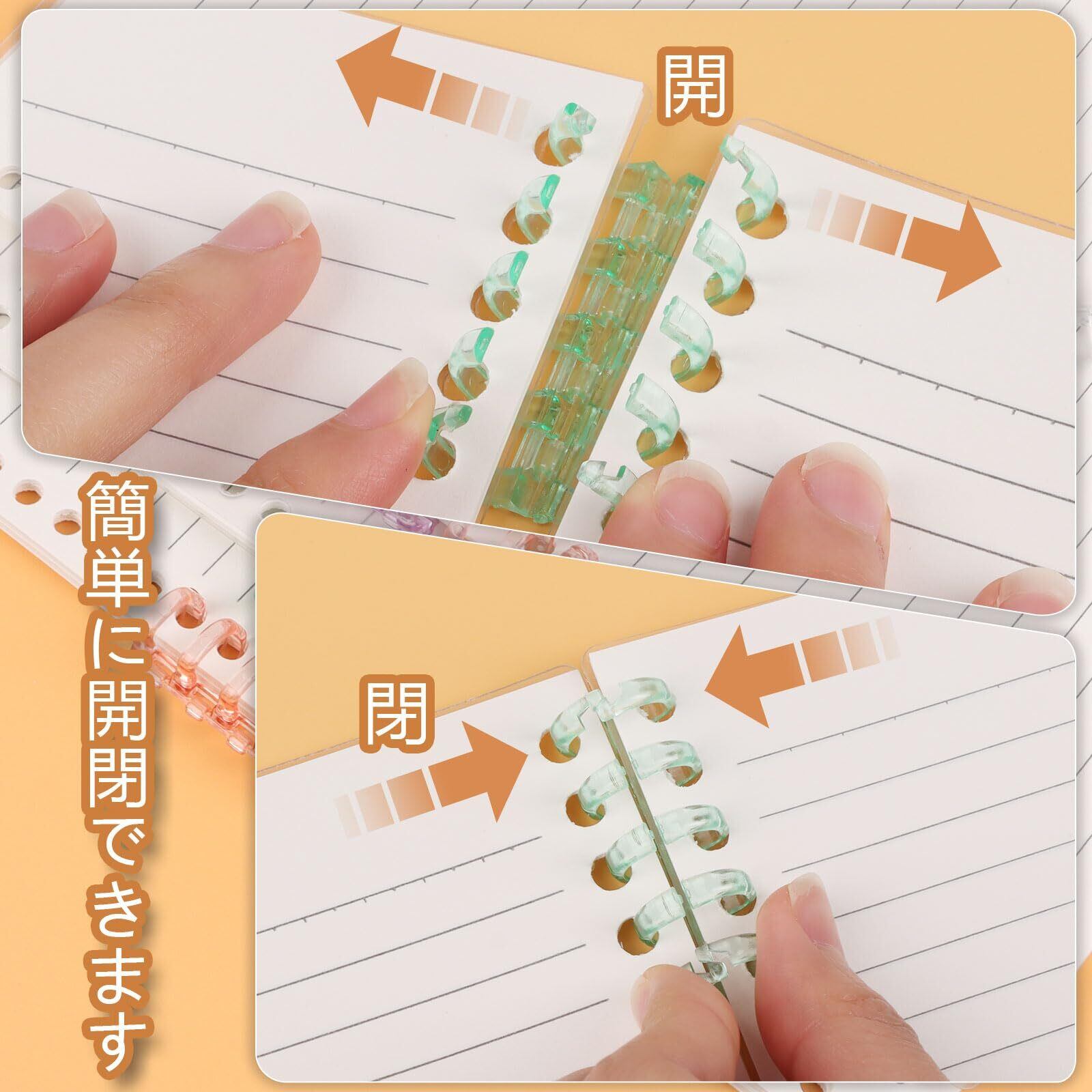 【在庫セール】CCINEE ルーズリーフ リング バインダー 製本用とじ具 12個セット 6色 5穴 取り外し可能 プラスチック製 A4 A5 B5製本用 手帳 ファイル整理