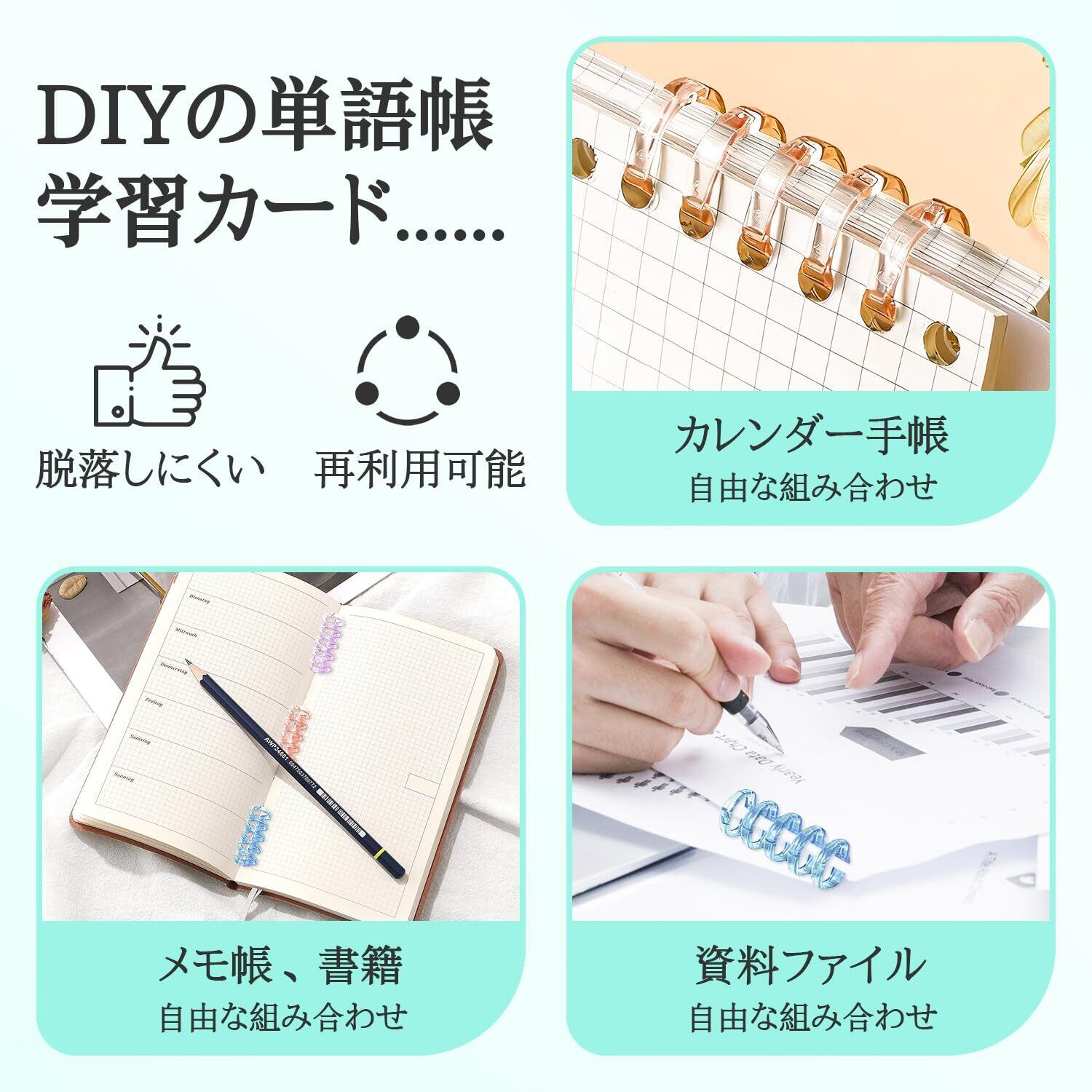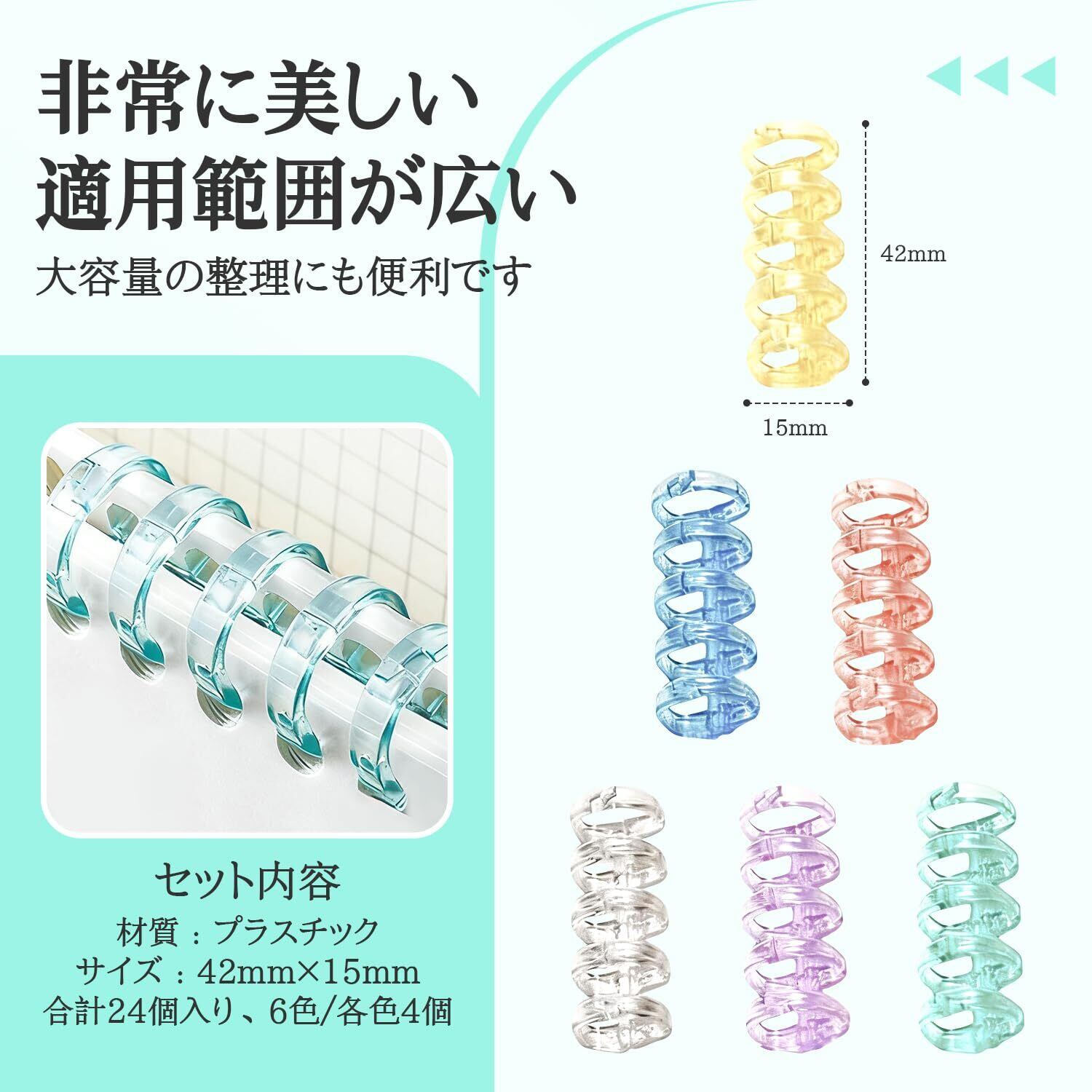 【充実の6色セット】色彩豊かな全6色のリングが各4個ずつ、合計24個の大容量セット。孔径15mm、孔间距6mm、高さ42mmの国際規格に対応し、A4/B5/A5用紙をしっかりホールド。色分け管理で書類やノートの整理がはかどり、資料整合が綺麗にまとまります。