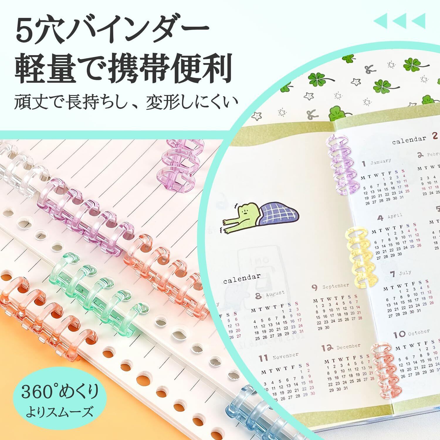 【在庫処分】ルーズリーフ リング 24個セット 5穴 ルーズリング 6色入 穴径15mm 簡単取り外し可能 A4/A5/B5用紙対応 カラフル色分け 収納便利 書類製本 ノート整理 勉強 アルバム 資料保存 事務 オフィス活用